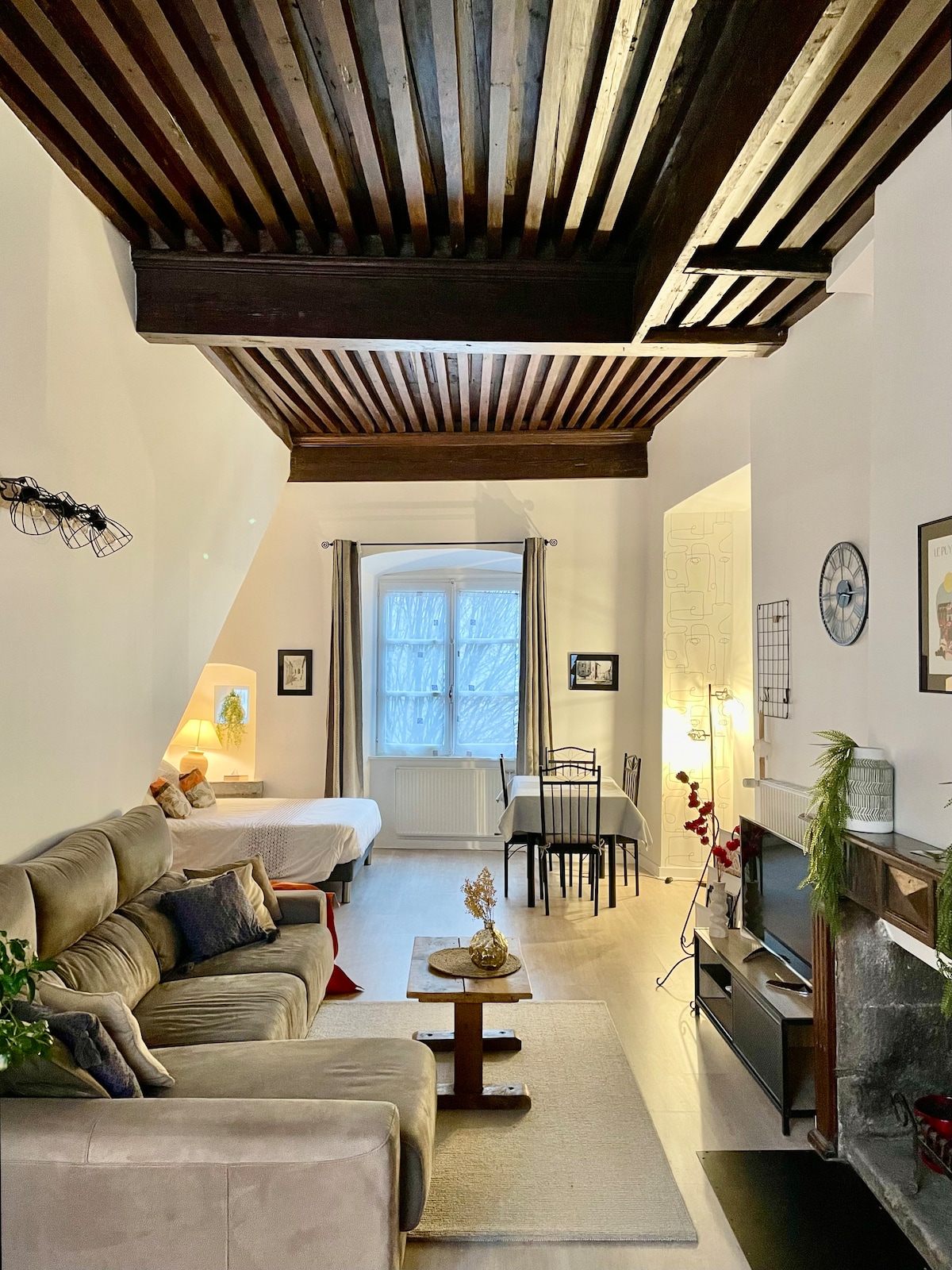 Have a nice relaxing time in this quiet duplex apartment in the heart of the town. This cozy nest has been entirely remodelled and combines the charm of old with functionality. You will get to enjoy the view both on the statue of virgin Mary and Le Puy’s cathedral from a quiet and bright location. The appartement is situated directly across from the covered market where you will find delicious local products in a friendly, sharing environment. Feel free to visit the old town or various hikes ;)