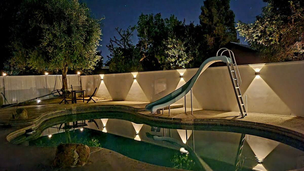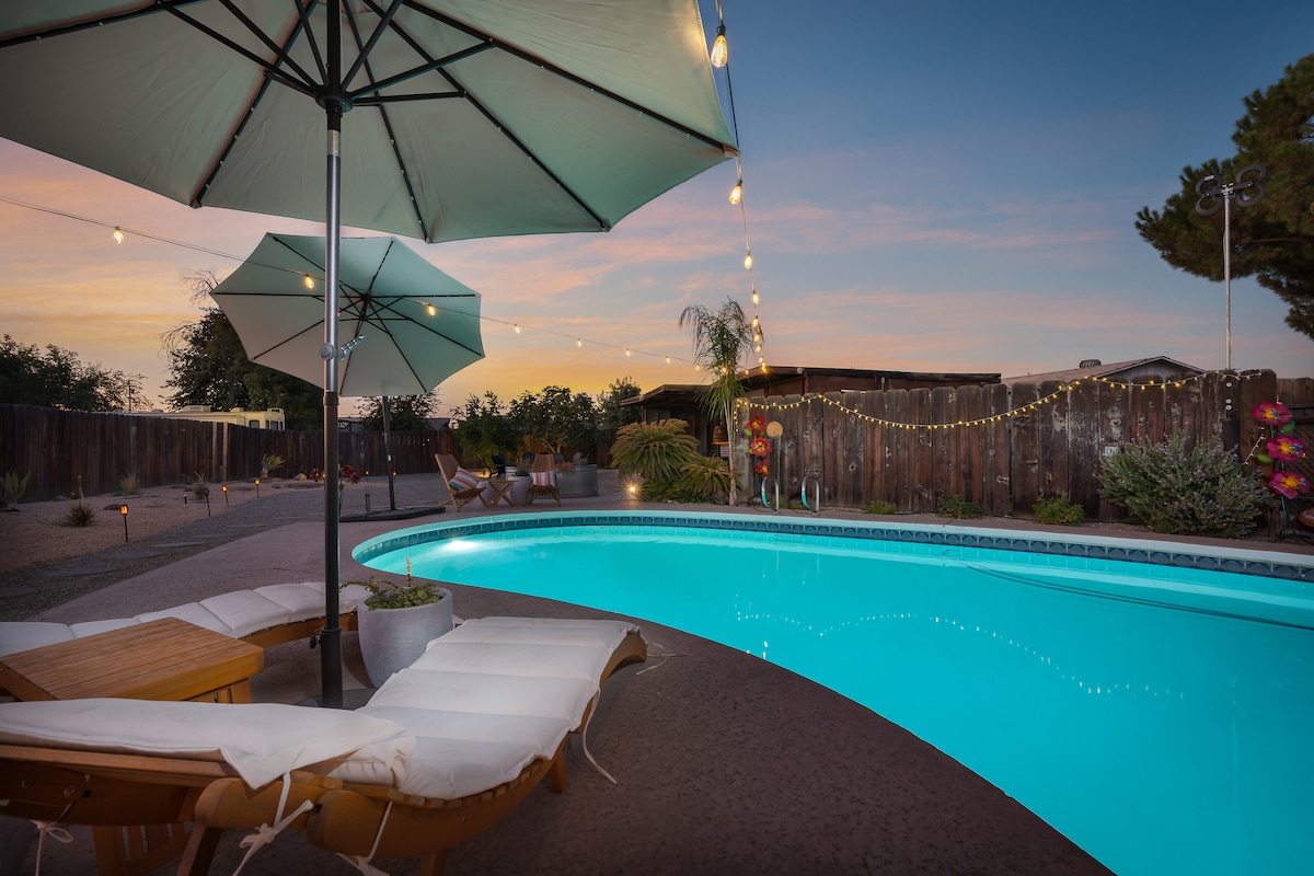 베이커즈필드의 활기찬 보호 오아시스에 오신 것을 환영합니다! 아름답게 리모델링된 침실 3개짜리 숙소로 에스프레소 바가 있는 아늑한 개방형 거실 공간 전기 인테리어가 돋보입니다. 넓은 뒷마당에는 커다란 수영장, 화덕, 티키 바가 있어 수영장 옆에서 휴식을 취하며 햇볕을 쬐기에 완벽합니다. 각 침실은 독특한 매력을 제공하여 모든 게스트에게 편안함을 보장합니다. 캘러웨이에 편리하게 위치하고 있어 도시에서 가장 인기 있는 장소에서 몇 분 거리에 있습니다. 다채로운 색상의 휴양지에서 휴식을 취하고 즐거운 시간을 보내세요.
