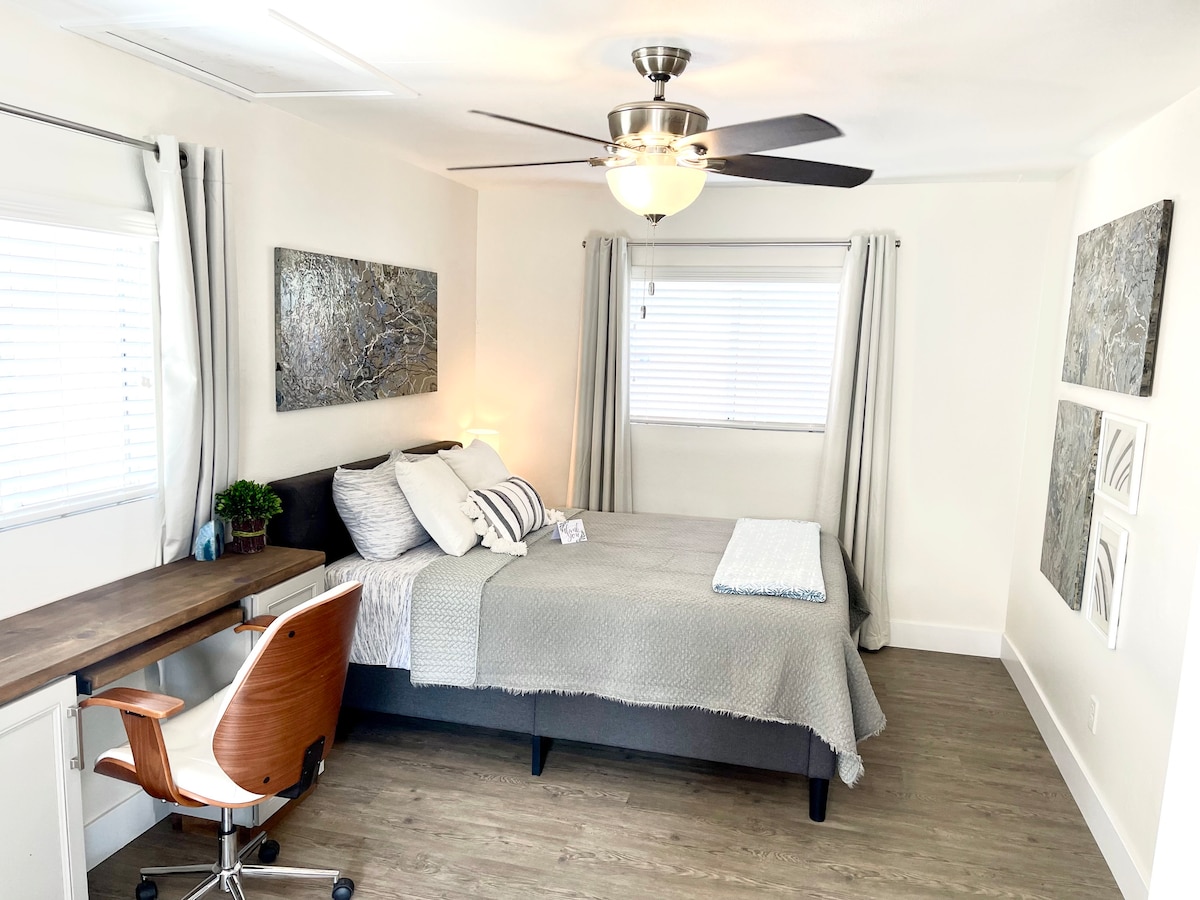 평화로운 휴양지에 오신 것을 환영합니다! 조용한 베이커스필드 동네에 위치한 아늑한 게스트하우스로 휴식과 편안함을 염두에 두고 설계되었습니다. 부드럽고 차분한 색상 팔레트는 긴 하루를 마친 후 긴장을 풀 수 있는 완벽한 고요한 분위기를 연출합니다. 현대적인 편의시설로 세심하게 준비된 이 공간은 따뜻한 느낌을 줍니다! 출장이든 여가이든 조용하고 프라이빗한 분위기와 편안한 침대에서 숙면을 취할 수 있습니다. 머무르시길 바라며 어서 만나 뵙기를 기다리고 있어요!