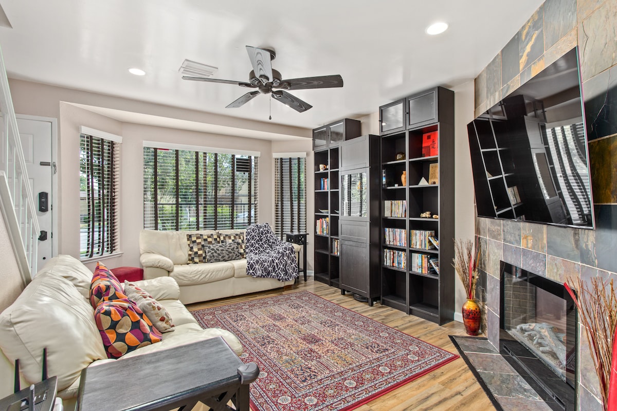위치 위치 위치. 반려견과 산책하거나, 조깅을 하거나, 테니스를 치거나, 피클볼을 즐길 수 있는 아름다운 공원 건너편에 있습니다. 숨막히는 오리 연못도 있습니다. 식사, 쇼핑, 바, 코미디 클럽 등이 도보 거리 또는 차로 2~3분 거리에 있습니다. 위치가 매우 좋고 평화롭고 조용합니다. 저희 블록에는 경찰도 살고 있습니다. 도어 코드로 언제든지 체크인하세요. 신축 건물입니다. 실망하지 않으실 겁니다.