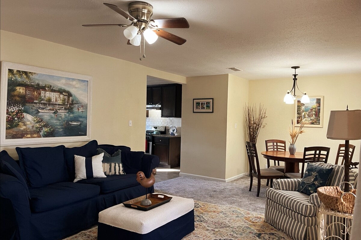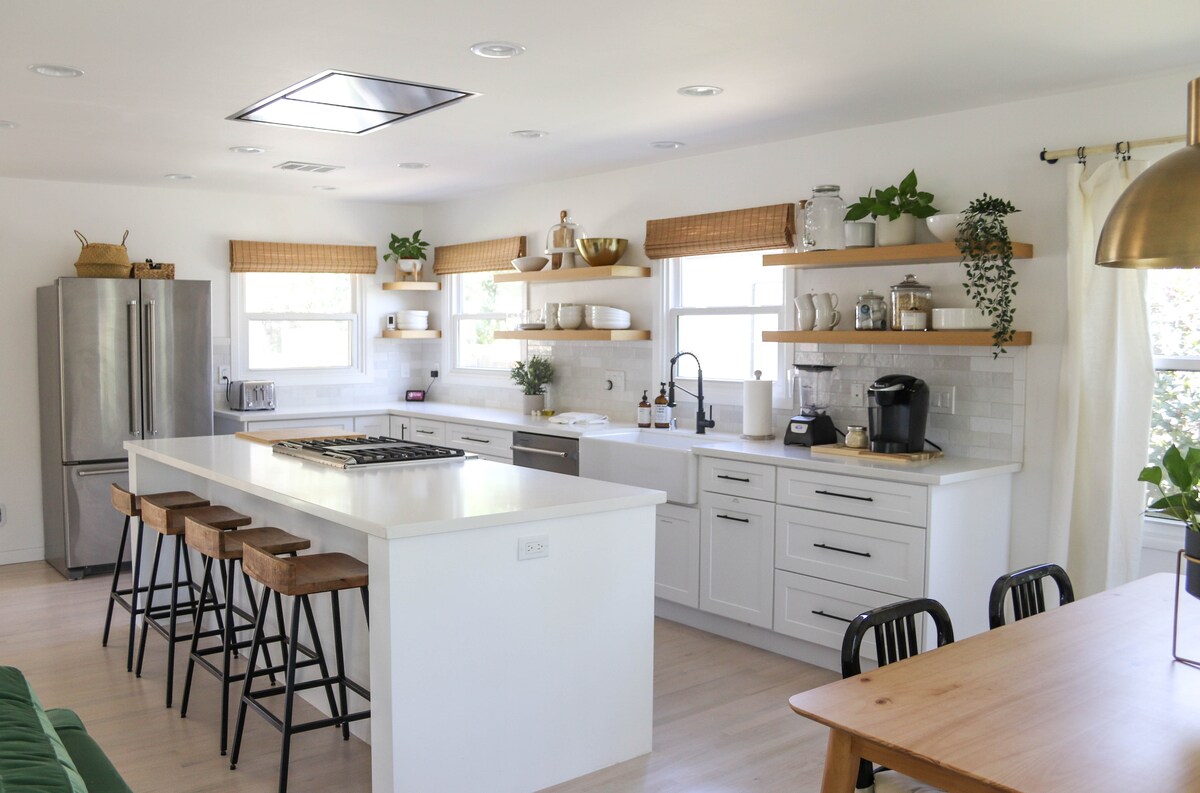 새롭게 리모델링한 베이커스필드 다운타운의 2베드룸 숙소에서 세련된 숙박을 즐기세요. 이 아름다운 숙소는 화려하고 완비된 오픈 컨셉 주방, 최신 스테인리스 스틸 가전제품, 천장 후드 통풍구, 대형 농가 싱크대, 미드 센추리 모던 가구를 자랑합니다. 욕실에는 욕조에 몸을 담거나 레인샤워를 즐기는 등 셀프 케어를 위한 시설이 완비되어 있습니다. 비즈니스이든 즐거움이든 이 멋진 공간이 도와드릴 것입니다!