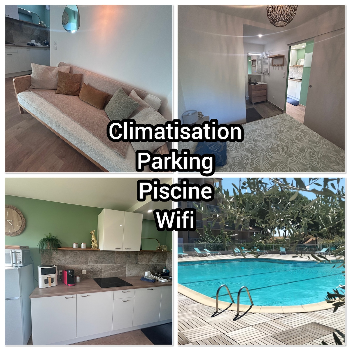 1층에 위치한 25㎡ 스튜디오에 오신 것을 환영합니다. 로비와 전용 출입구. 바닥에서 천장까지 이어지는 커다란 창문과 야외 달리기. 센세오와 주전자가 완비된 주방. 와이파이와 TV. 화장실이 있는 샤워실. 리버시블 에어컨. 침구와 수건이 제공됩니다. 유료 옵션: 숙박 종료 청소 €10/세탁기 €3. Balaruc le Vieux에 위치. 버스 정류장은 100m 거리에 있습니다. 온천까지 셔틀을 이용하세요. 앞에 있는 까르푸 쇼핑 센터.
