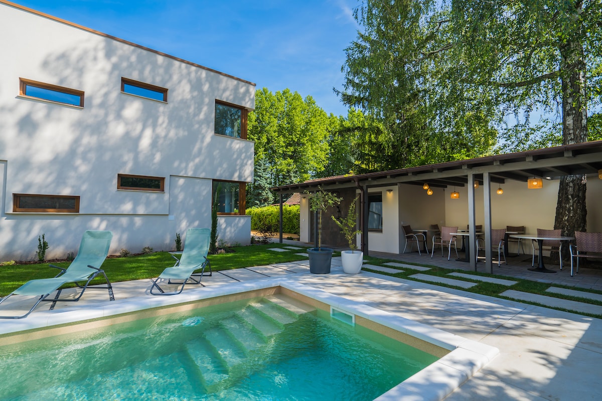 베스프렘의 교외, 도심에서 차로 8분 거리에 위치한 새롭게 지어진 아파트 건물에서 세련된 아파트를 제공합니다. 마당에서 무료 주차 가능. 이 아파트에는 게스트를 위한 적외선 사우나도 있습니다. 침실에는 대형 더블 침대, 거실에는 접이식 소파 베드가 있습니다. 성인 2명 + 어린이 2명에게 이상적입니다. 마당에는 온수 자쿠지가 있어 세 아파트의 게스트 모두 무제한으로 이용할 수 있습니다.