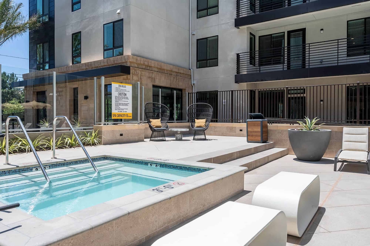 멋지고 프라이빗하며 고요한 아파트 숙소입니다. 킹사이즈 침대. 2명이 편안하게 잘 수 있습니다. 소파에서 자는 것은 선택사항입니다. 샤워 시설/욕조 완비. 약 725평방피트. 거실에는 65인치 스마트 TV가 설치되어 있습니다. 숙소 내 세탁기/건조기 (세제). 단기 또는 장기 숙박에 필요한 모든 것을 갖춘 주방. 제빙기가 있는 냉장고. 빠른 와이파이. 공용 수영장, 자쿠지, 헬스장. 완벽하게 소독되고 깨끗합니다. 지정 주차 공간 1개. 평화롭게 오시거나 아예 오지 마세요. 즐거운 시간 보내세요