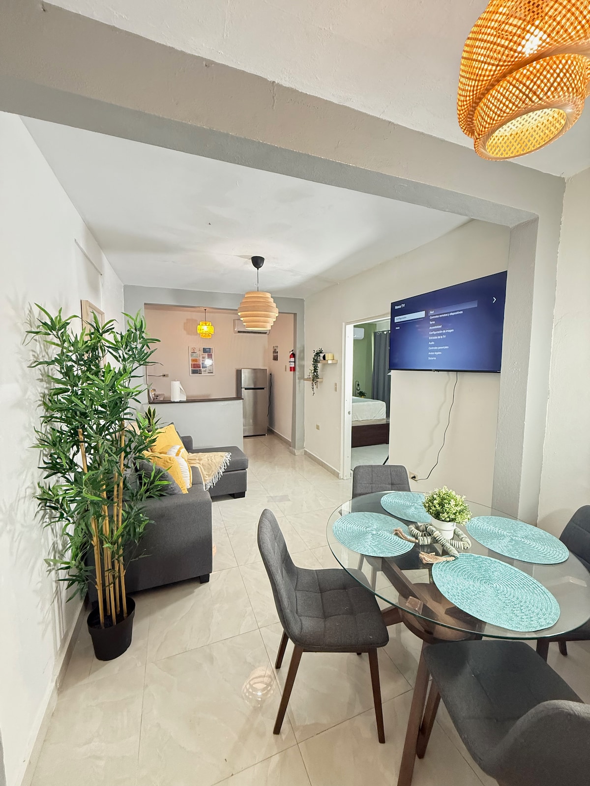 Beautiful and modern space, perfect for a couple or a group of four people. Strategically located five minutes from the airport and 10 minutes from San Juan. Come to Puerto Rico and enjoy the beaches, its people and much more. The apartment consists of a living room with a sofa bed queen size, a beautiful room with a queen size bed, two air conditioning units, two tvs and a beautiful, modern kitchen with all utensils for cook, private parking and balcony for share with your family.