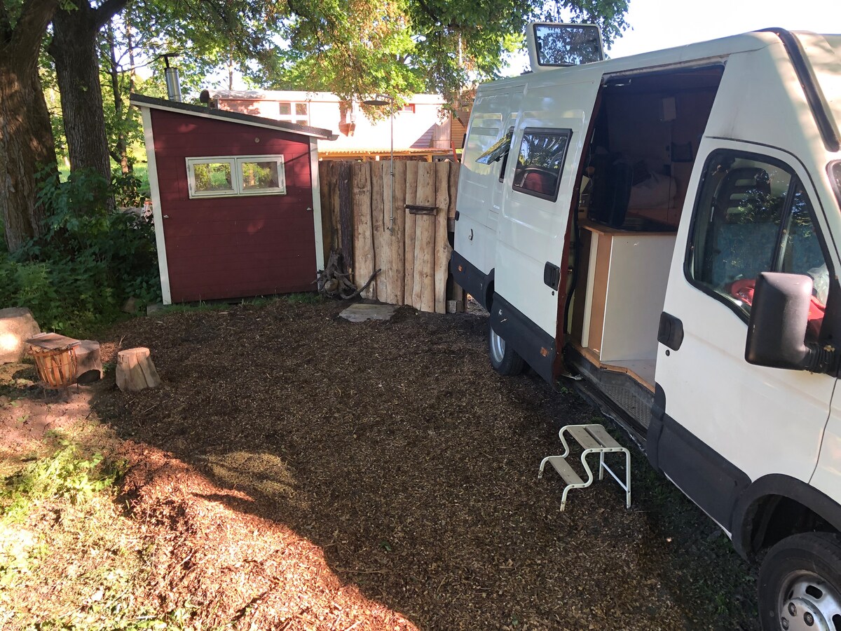 Bauwagen im Obstgarten
