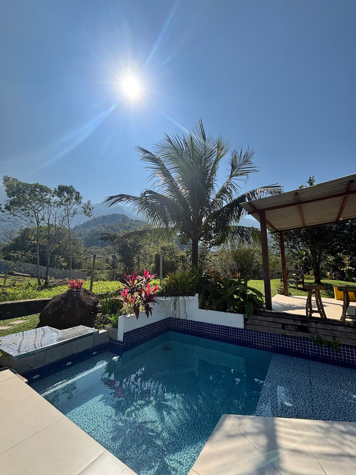 Casa em área rural em Angra dos reis, bairro Zungu, mercado, restaurante e cachoeira bem próximos! Casa composta por 3 quartos sendo 1 suíte, churrasqueira, piscina, cozinha toda equipada e planejada, cada quarto contém uma cama de casal e temos mais 2 colchonetes. Ar condicionado em todos os quartos e na sala. Trilha para cachoeira do encanto, e tem outra cachoeira bem pertinho da residência. Casa inteira privativa( NÃO temos área comum). Não alugamos com intuito de festa/proibido música alta.