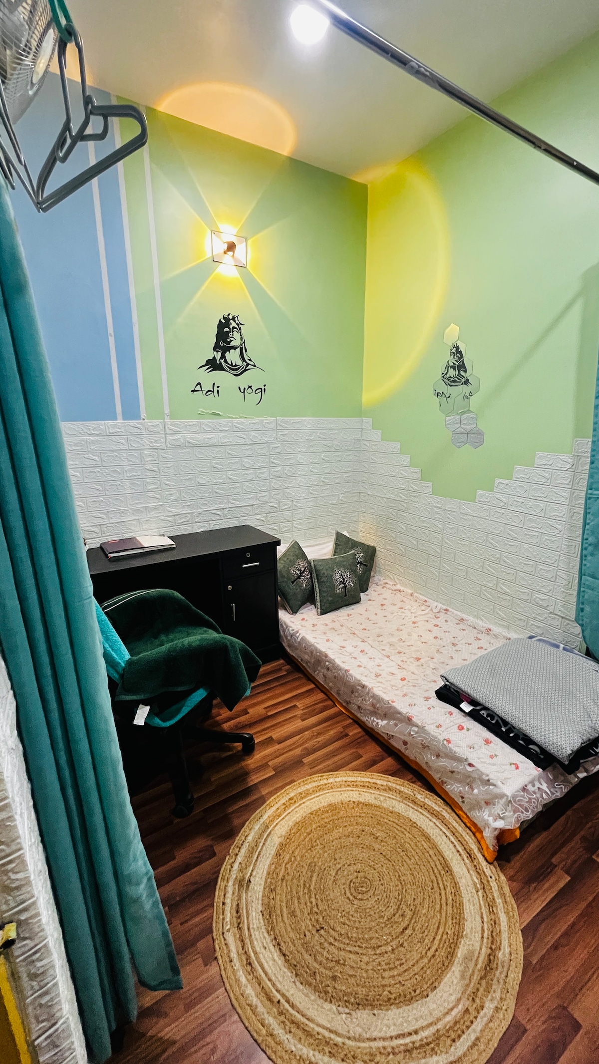 1층 프리미엄 스위트는 크리슈나 테마를 기반으로 합니다. 완비된 스타 클래스 390평방피트 스위트 유닛입니다. 방 2개, 완비된 주방이 있으며 성인 3명 또는 성인 2명과 어린이 2명이 잘 수 있습니다. 거대한 테라스와 주차장도 마련되어 있습니다. 주변에 레스토랑과 상점이 많습니다. 이 숙소는 중심부에 위치해 있으며 모든 중요한 장소가 가까운 거리에 있어 몇 분 이내에 갈 수 있습니다. 이 에어비앤비를 통해 이 프로젝트의 일환으로 우리 지역의 어려운 아동을 위한 지역 사회 학교를 지원합니다.