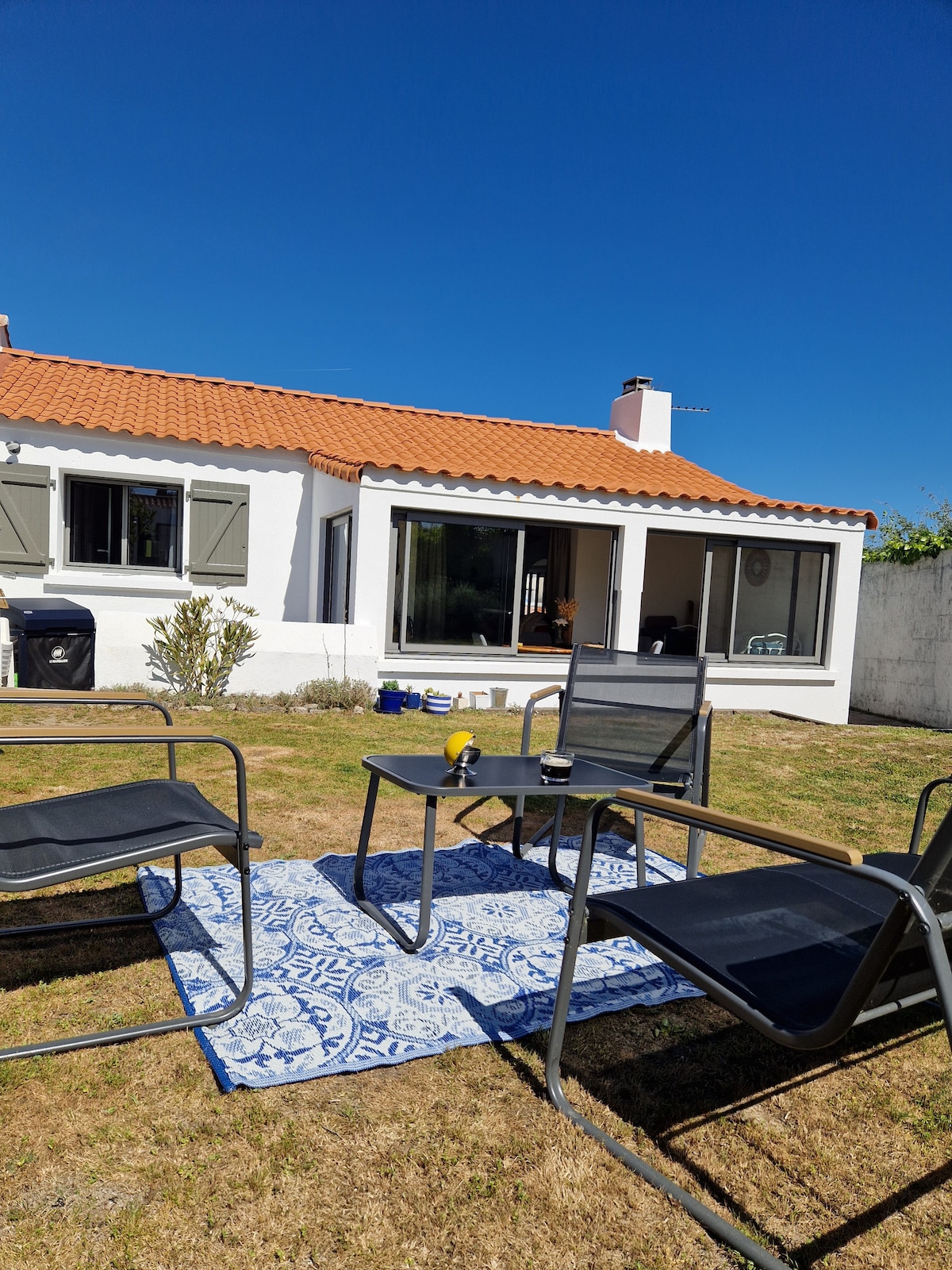 Située au cœur du village de Barbâtre sur l'ile de Noirmoutier, cette charmante maison vous mènera tout droit à la plage à 200m, au bout du chemin. Celle-ci se trouve également en plein centre proche des commerces. La Brigantine charmante maison de 68 m2 comporte deux chambres, pourvues de lits doubles, ainsi qu’une troisième chambre avec un lit superposé. Les draps et les serviettes sont INCLUS La terrasse sans vis-à-vis, comporte un barbecue ,des chiliennes et un salon de jardin. Wifi fibre/TV