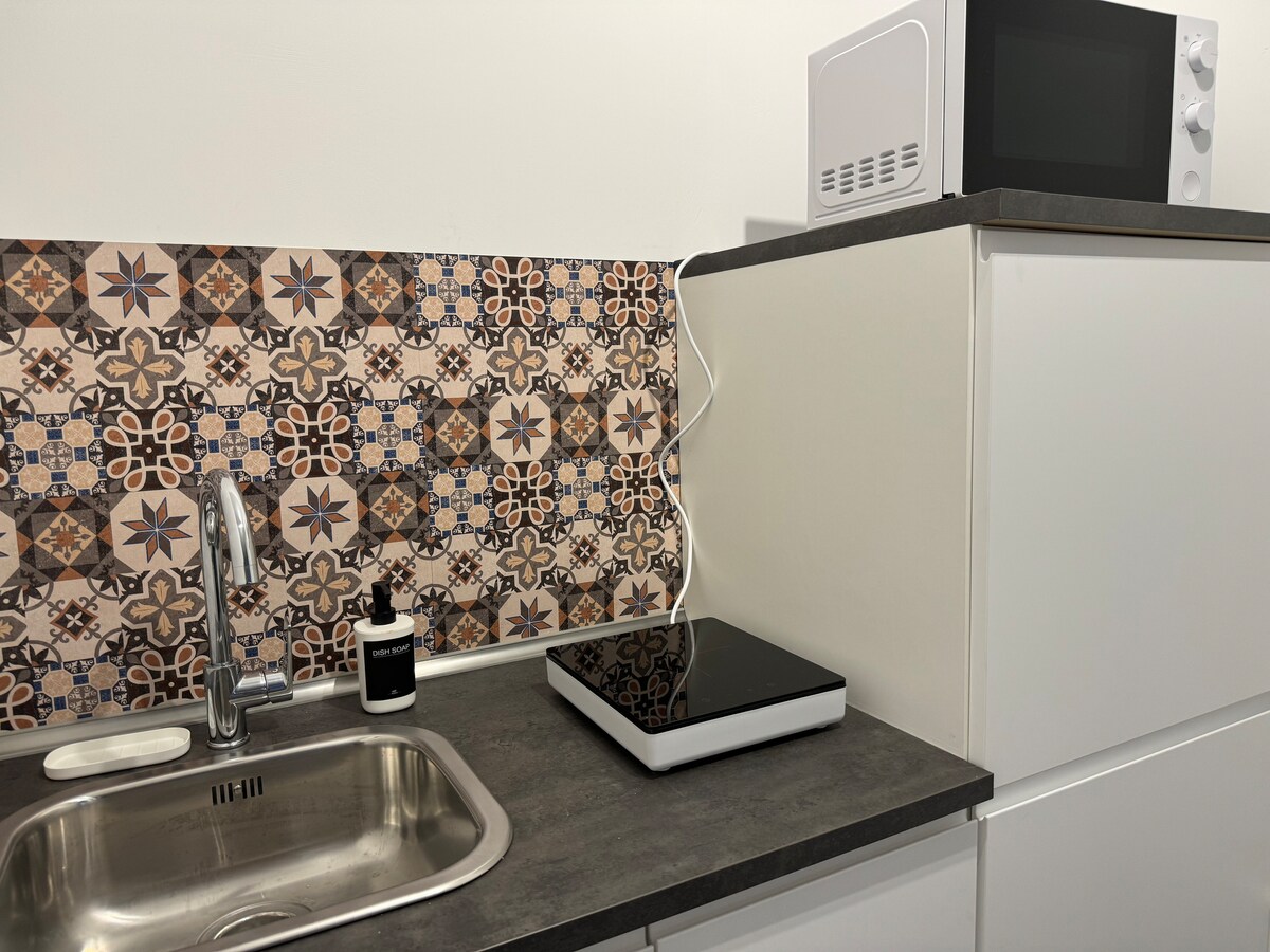 이 아파트는 더블 침대 또는 싱글 침대 2개, 소파 베드, TV, 식탁, 냉장고, 인덕션 쿠킹 팬 및 전자레인지, 작은 야외 공간, 샤워실, 비데, 화장실, 침구 및 수건이 포함된 개방형 공간으로 구성되어 있습니다. 바 옆에서 이탈리아 아침 식사를 제공하며, 커피, 에스프레소, 카푸치노, 주스 중 음료를 선택하실 수 있습니다. 또한 다양한 크루아상 중 디저트로 선택하실 수 있습니다.