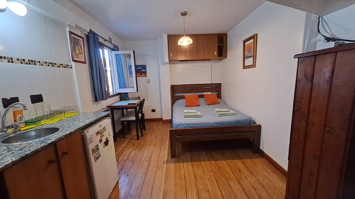 에피시엔시 아파트, 매우 중심가에 위치(시민 센터에서 250미터), 나우엘 우아피 호수 바로 앞 건물에 위치(전망 없음). 편안한 2인용 침대와 소파 베드를 갖춘 실용적인 원룸입니다. 넷플릭스가 있는 스마트 TV, 와이파이, 전자레인지, 토스터, 주전자, 전기 스토브가 있는 간이 주방. 계단으로 2층에 있습니다.