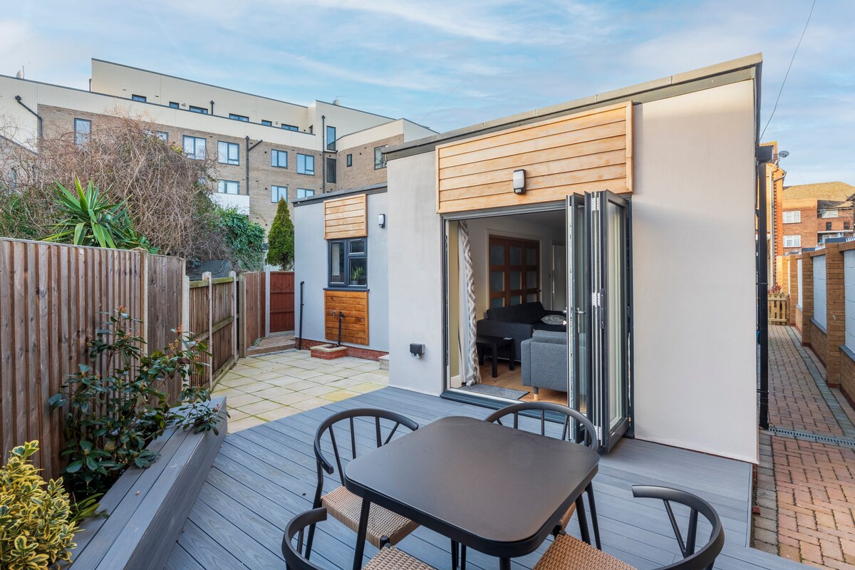 Relax in this stylish new-built bungalow with eco-green roof. Located in a private secure, 2-unit development, it is set back from the main road, providing a tranquil environment to relax and unwind. It is on a single level, and is therefore family friendly. Its lovely landscaped private decking area is a treat to behold and is ideal for chilling out after a long day exploring the delights of London. It has brilliant transport links & the London ExCel Centre is only a short journey away.