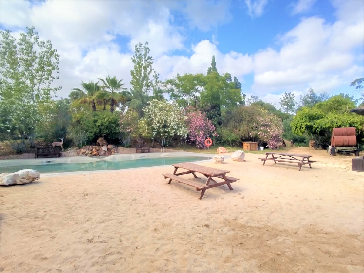 Welcome to Hidden Paradise, a peaceful haven nestled in the heart of Alentejo’s nature. Sleep under the stars in a cozy tent, lulled by silence and birdsong. Enjoy a spectacular night sky, magical sunsets, and a small lake to cool off. Stroll among olive and cork oak trees, relax in a hammock, or practice yoga on our raised wooden deck. A simple and authentic glamping experience to slow down, recharge, and reconnect with what truly matters.