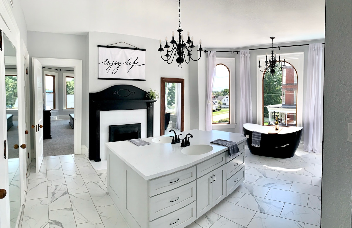 온수 욕조가 있는 현대적이고 낭만적인 초소형 주택
