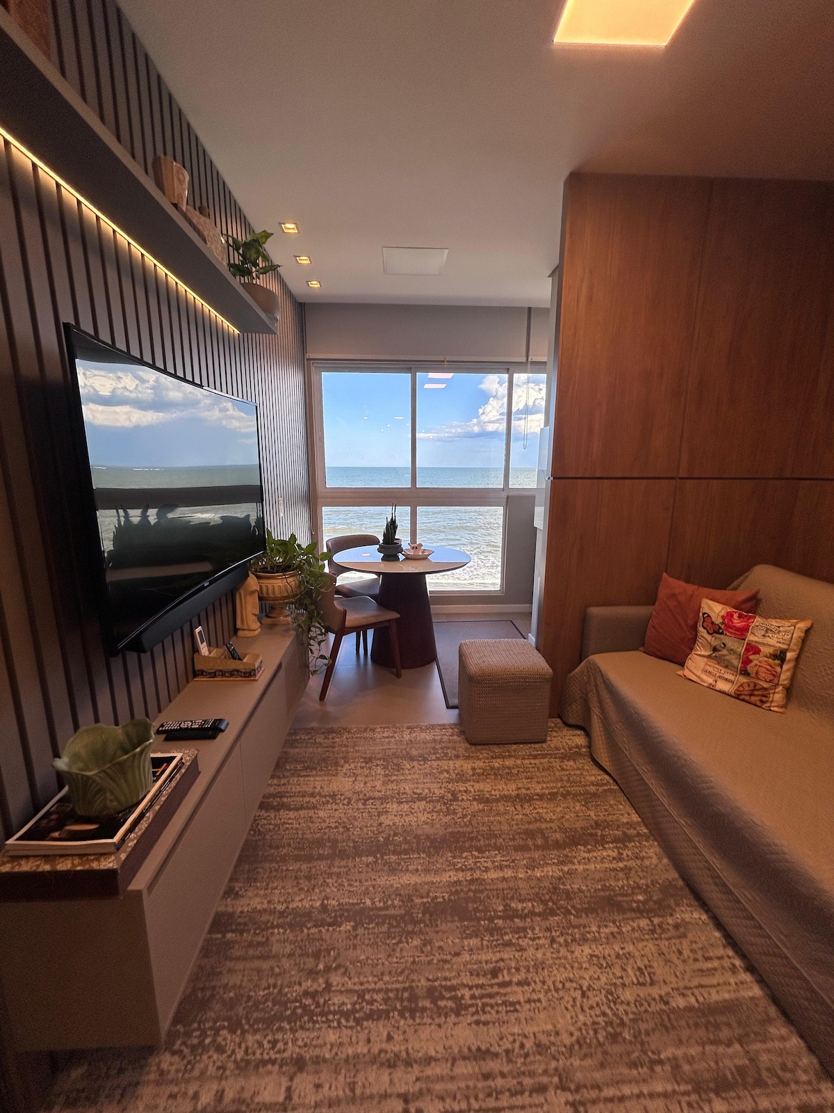 해변에 인접한 아름다운 아파트로 해변에 독점적으로 접근할 수 있습니다. 최대 5명까지 수용할 수 있으며 현대적이고 독특한 스타일로 완비되어 있습니다. 다양한 레저 시설을 갖춘 훌륭한 가족 환경: 인피니티 풀과 자쿠지 어린이 수영장 웻 바 온천 수영장 일광욕실 게임 룸 사우나 피트니스 스튜디오 및 필라테스 스포츠 코트 영화관 키즈 공간 및 놀이터 미식 공간 및 파티 홀 애완동물 공간 주차장 베토 카레로 공원까지 15분 이내. 애완 동물 입실 가능