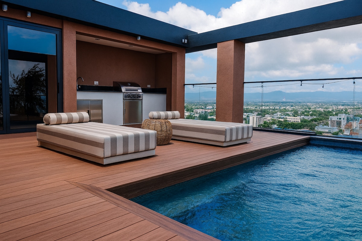 옥상 수영장과 멋진 전망을 갖춘 현대적인 아파트!