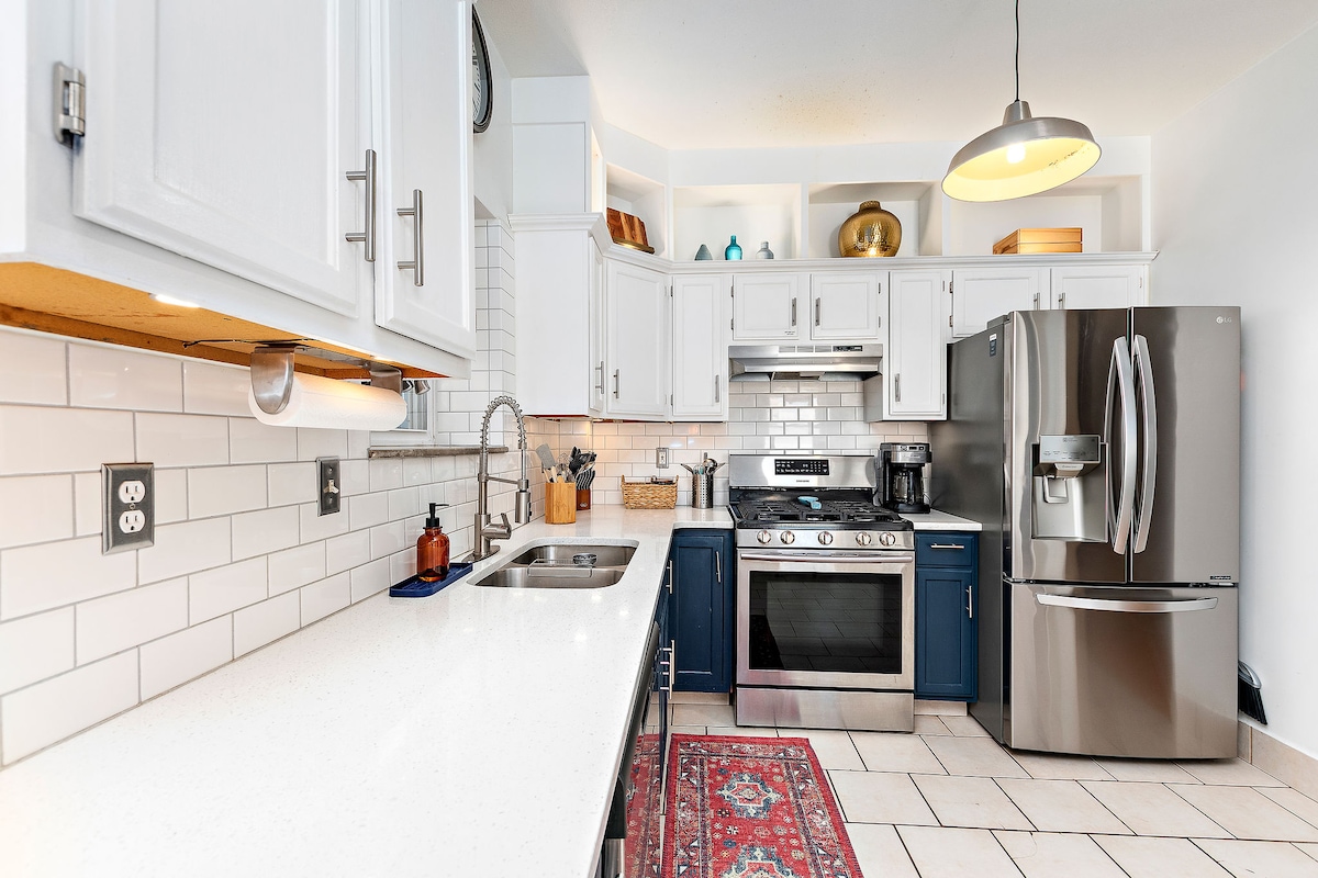Sweeping skyline views from this design-forward hilltop retreat - your basecamp atop the city for FIFA World Cup, museums, nightlife, kids' attractions and more. You're 5-15 minutes from most attractions in KC - or walk to Slap's BBQ & nearby bars in the neighborhood. Features soaring timber beams, craft coffee bar & a game room, plus great bedding, dedicated office & curated details across 2,000 sq. ft. of space to spread out in. Ideal for groups of 4-6 seeking the unique over the ordinary.