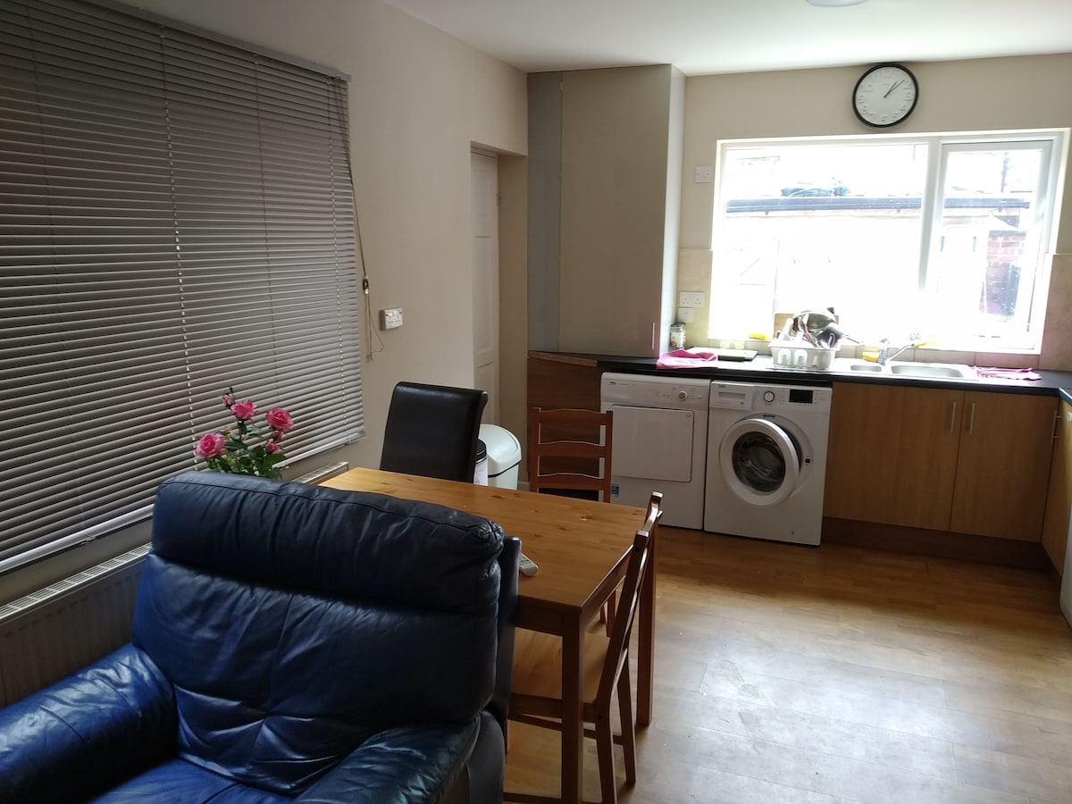 넓고 평온한 숙소에 머물면서 걱정과 근심을 잊어보세요. 노팅엄 외곽에 위치한 침실 2개 숙소, 도심 병원에서 도보로 5분 거리, 조용한 막다른 골목 위치, 집 전체를 단독으로 사용하실 수 있습니다. 두 대의 차를 위한 노상 주차장, 앞뒤정원, 트램/버스 정류장에서 매우 가깝습니다. 상점과 펍이 근처에 있습니다. 숙박 기간 동안 반려견 1마리당 10파운드의 요금으로 잘 행동하는 반려견을 환영합니다. 와이파이 설치