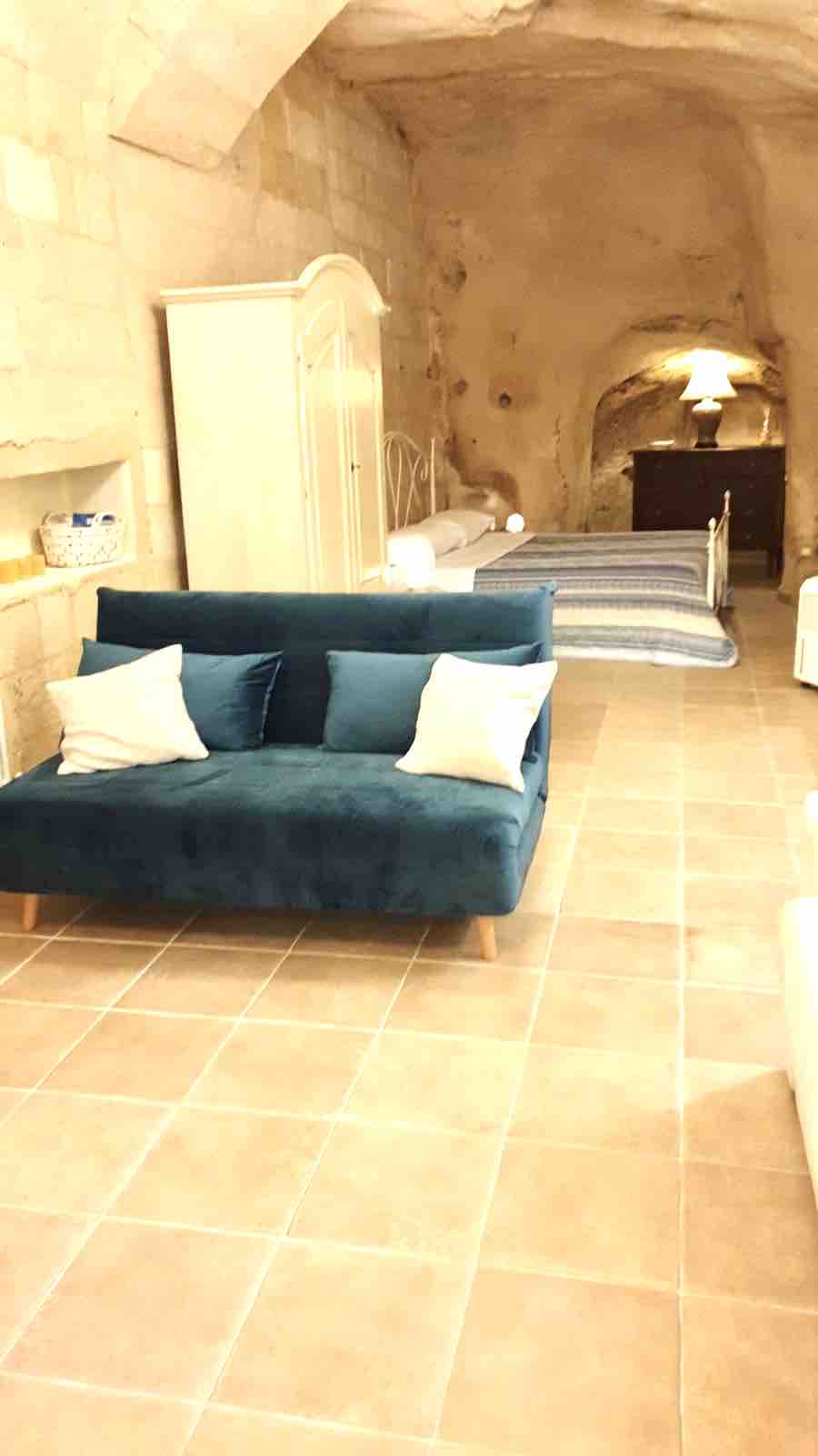 제 숙소는 마테라에 위치한 전형적인 사시 주택으로, 바위에 부분적으로 새겨져 있고, 터프에 부분적으로 세워져 있습니다. 이 공간은 현대성이 우리에게 준 편안함에서 벗어나지 않고 수세기 동안 이 동굴에서 살았던 민족의 역사를 참고로 하여 꾸며졌습니다. 집처럼 편안하게 느낄 수 있는 따뜻하고 분위기 있는 환경을 갖추고 있습니다. 향기와 색상이 시간을 되돌릴 수 있는 보육실처럼 말이죠.