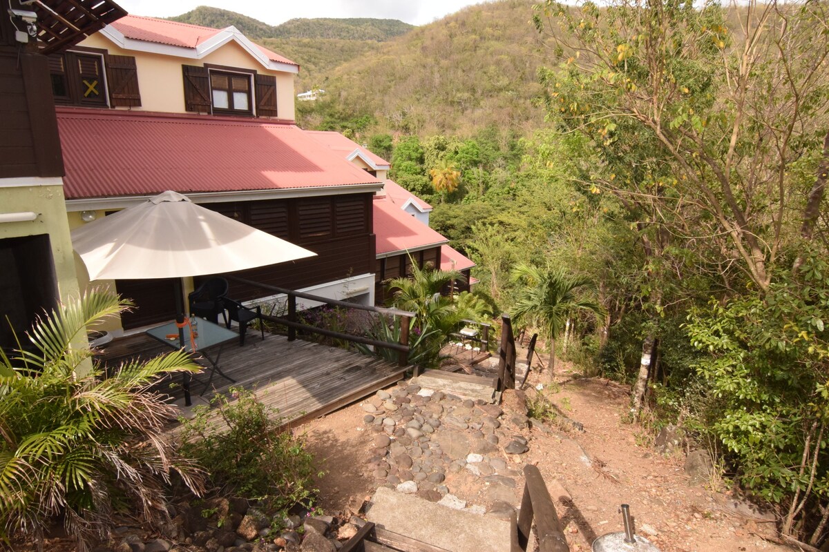 이국적인 정원 한가운데에 자리 잡은 3개의 전원주택 중 하나에 오신 것을 환영합니다. 열대 숲과 카리브해 사이의 그란데안스 해변에서 900m 거리에 위치한 이 숙소는 전용 수영장, 테라스, 주방/라운지, 에어컨이 설치된 마스터 침실 (침대 160) 이 있는 데크로 구성되어 있습니다. 수영장 근처에서 휴식을 취하고 벌새와 함께 웰컴 칵테일을 즐긴 후 멋진 섬을 방문하세요... 그럼 곧 파라다이스에서 뵙겠습니다...