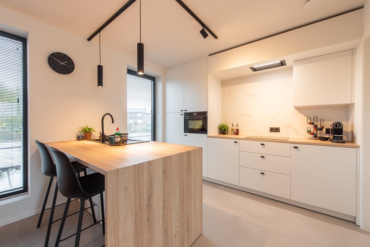 이 넓은 아파트에 머무르는 동안 완전히 휴식을 취하실 수 있습니다. 마당에 차량 2대를 주차할 수 있는 공간이 마련되어 있습니다. 공용 정원에는 트램펄린과 등반 선반이 있습니다. 거실에는 TV와 펠릿 스토브가 있습니다. 욕실에는 넉넉한 샤워기가 있습니다. 주방에는 전자레인지/오븐 + 식기세척기가 갖추어져 있습니다. 숙소에는 더블 침대와 편안한 토퍼가 있는 더블 소파 베드가 있습니다. 세탁기와 건조기는 장기 숙박에 이상적입니다. 양층에 에어컨이 갖추어져 있습니다.