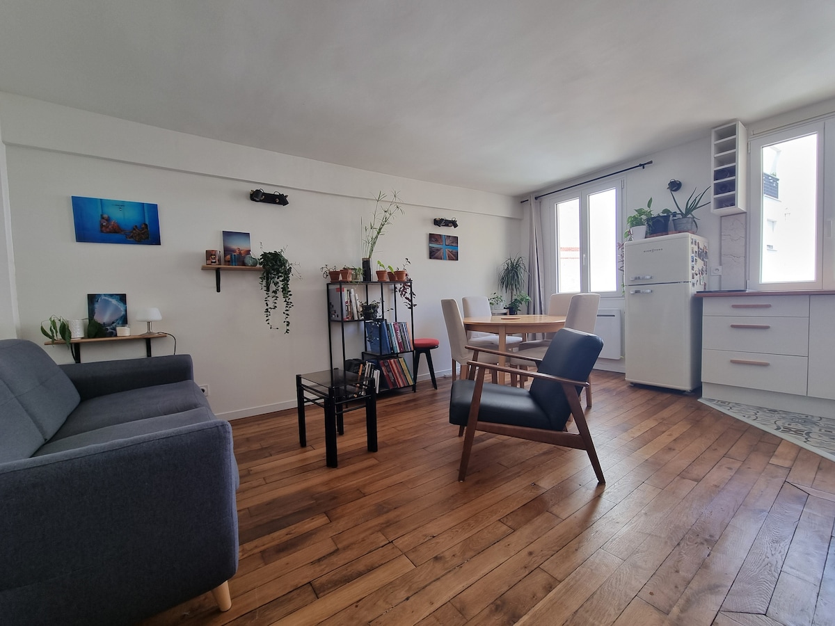 건축가가 리모델링한 이 세련된 숙소는 60년대의 평화롭고 이색적인 분위기에 흠뻑 빠져들게 할 것입니다. 시설이 완비되어 있어 여기서 집처럼 편안하게 지낼 수 있습니다. 녹지와 차분한 거리에🌳 이상적으로 위치하고 있으며, 길 끝에 있는 바샨 드 라 빌레트와 성인과 어린이를 위한 다양한 액티비티를 즐길 수 있어 따뜻한 날에 이상적입니다. 뷔트 쇼몽은 도보 거리 내에 있습니다. 지하철 ️ 3호선을 통해 파리 어디든 이동할 수 있습니다.