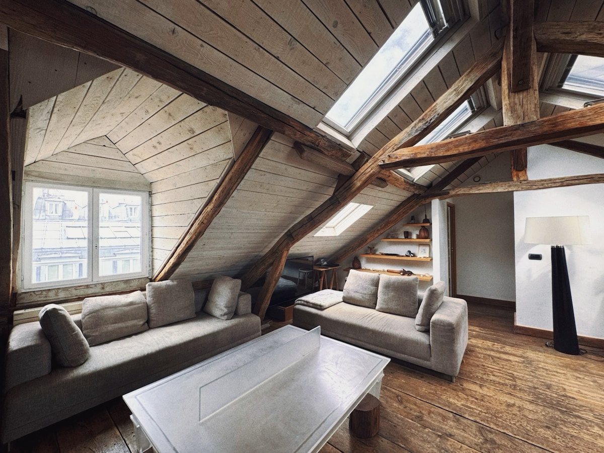 In the Paris’ trendiest neighborhood, elegant and cosy apartment with artistic vibe, close to the world famous Place des Vosges. 560sqf, under the roofs, charming, quiet and cosy, clean and decorated with taste, the flat has a small terrace with trees and plants. The area couldn’t be safer. Easy connection to everything and 2min from Picasso Museum, 5 from the waterside, 3 from Opera & many other interresting, hip, fashionable and iconic places. The amazing Paris at your doorstep! Welcome!