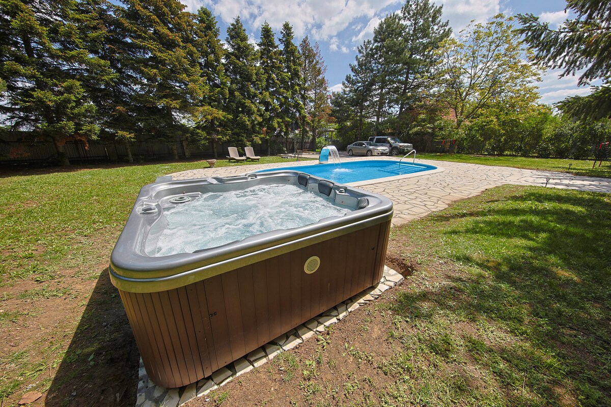 Escape to the tranquil countryside near Arandjelovac, just 1 hour from Belgrade and indulge in the ultimate retreat at our charming rental house. Nestled in a serene village setting, this two-bedroom gem boasts luxurious amenities, including a private sauna and jacuzzi. Step onto the expansive terrace and be mesmerized by views of the mountains Kosmaj and Avala. Perfect for family gatherings or getaways with friends, our property offers the ideal blend of comfort and tranquility.