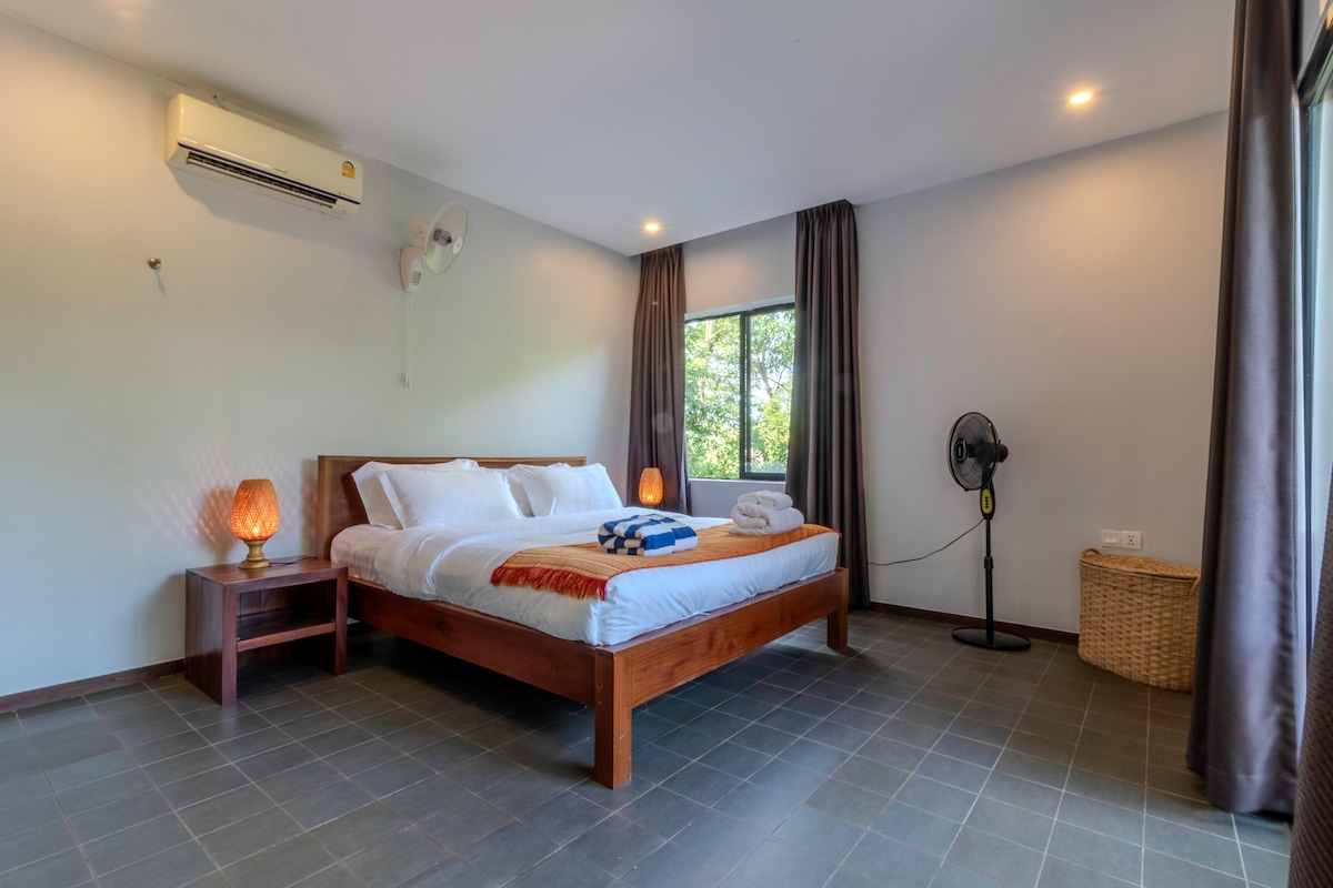 1층(지상층) 전체 사용, 에어컨이 설치된 방 2개, 욕실 2개, 거실, 시설이 완비된 주방 및 냉장고, 무료 초고속 와이파이, 세탁기, 정원이 있는 90평방미터의 대형 숙소. 각 객실에는 킹사이즈 침대(추가 매트리스 추가 가능), 에어컨 및 선풍기, 전용 욕실 및 온수 샤워, 물, 평면 스크린 스마트 TV, 샴푸/치약 및 브러시/세면도구가 있습니다. 최대 6명까지 수용할 수 있으며, 6명 이상인 경우 저에게 연락하세요. 전기 및 수도 공급이 포함되며, 장기 숙박의 경우 일주일에 한 번 하우스키핑이 제공됩니다.