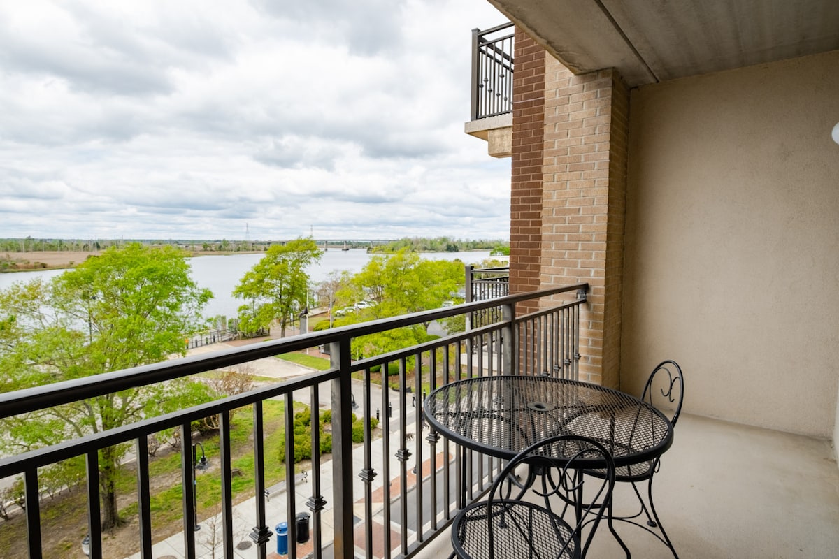 강 전망, 전용 발코니, 주차장이 있는 5층의 프라이빗한 시내 1BR 콘도 UNCW, 라이브 오크 뱅크 파빌리온, 윌밍턴 컨벤션 센터 및 해변과 가까움 ★ “위치가 환상적이고 콘도가 깨끗했습니다. 강력하게 추천합니다!” ☞ 야외 좌석이 있는 전용 발코니 ☞ 노스캐롤라이나 전함과 강변 풍경 감상 ☞ 주방 시설 완비 ☞ 차고 주차 포함(차량 1대, 외부) ☞ 숙소 내 세탁기 및 건조기 ☞ 전용 작업 공간 스마트 TV☞ 2개 ☞ 빠른 와이파이(328Mbps)