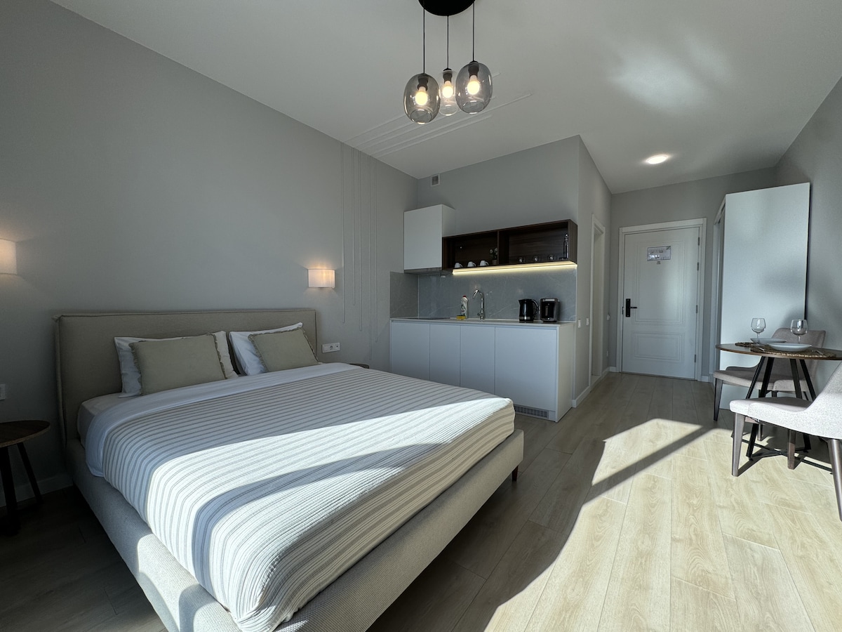 바닷가에 있는 세련된 아파트, 큰 발코니, 침실 2개