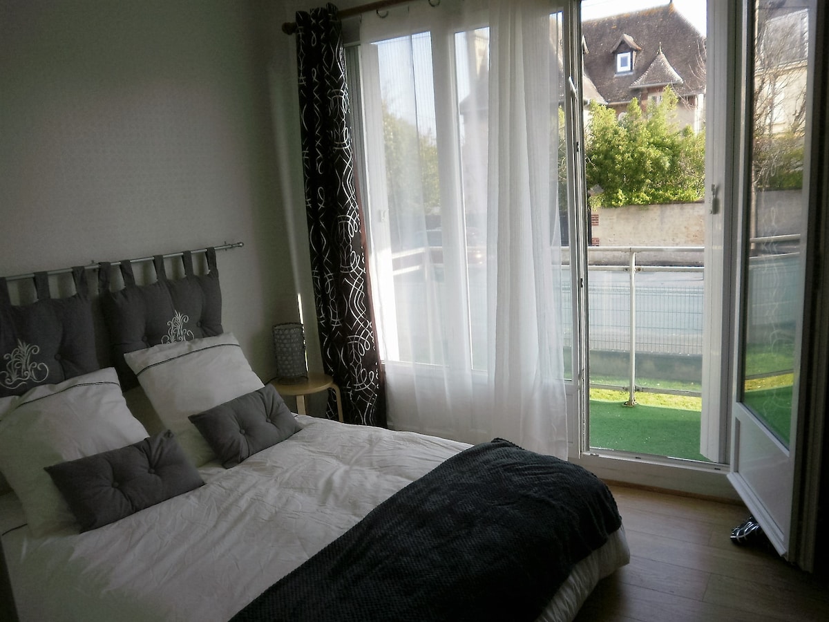 Accommodation classified by the Tourism Code 🇫🇷 Our Studio 61 is available to you all year round. Studio with no floor and completely independant located on our property with laundry rom and private terrace. The sea and landing beaches ( Sword Beach) are less than 1,2 miles away. Ideal for 2 people, couple with baby or for business TV 4K, TNT satellite dish,, Speaker Marshall Log in NETFLIX … CANAL PLUS … with yours access codes See you soon !
