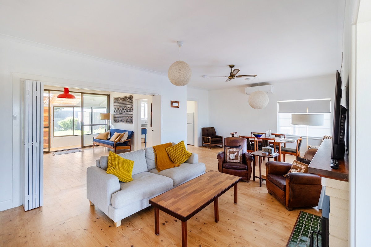 레드 핀은 무료 와이파이와 IS 반려동물 친화적인 개방형 거실 공간으로 북쪽을 향하는 넓은 바닥에서 천장까지 이어지는 창문이 있는 새 4베드룸 숙소로, 풍부한 빛과 따뜻함을 느낄 수 있습니다. 붉은 지느러미는 수풀과 보호구역의 전망을 자랑하는 조용한 하위 구역에 있으며 해변까지 불과 50미터 거리입니다. 새벽과 해질녘에 캥거루가 먹이를 주는 모습을 볼 수 있으며, 겨울에는 현지 보호구역에 물이 가득해 모든 현지 조류 생명을 위한 호수를 만듭니다.