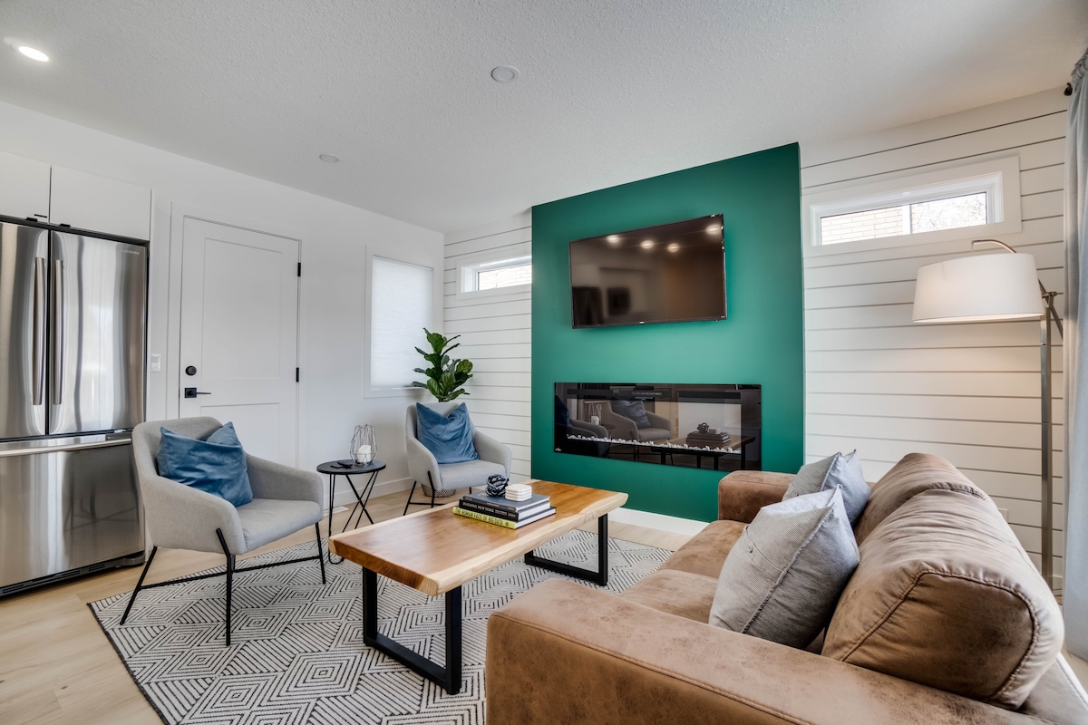 Stay downtown in a modern river valley retreat that is surrounded by natural beauty while being centrally located in Edmonton. One bedroom suite includes a kitchen, bathroom with walk-in shower and a living-room with a gas fireplace and pull out couch for additional guests. The building's main floor contains Dogpatch bistro and Bread+Butter bakery who will bring up a couple treats in the morning. Need more space? Check out River Valley Co. Suite 99 on AirBnB.