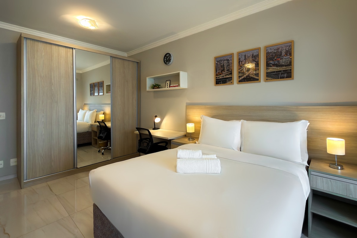 Enjoy the comfort and convenience of this flat, perfect for relaxation or work. Located in a sophisticated and welcoming environment, it offers all the infrastructure for an unforgettable stay. 24-hour security, daily housekeeping, and free valet parking. The space includes fast Wi-Fi, a workspace, a compact kitchen, and air conditioning. The building features a pool and gym. Perfect for those seeking comfort, convenience, and practicality.