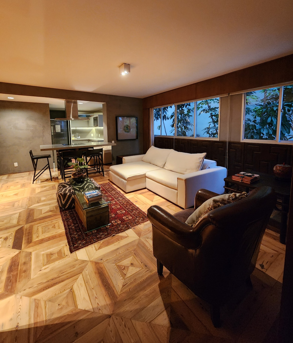 Venha curtir São Paulo em um apartamento que é o sonho de consumo para quem AMA conforto, modernidade, sofisticação, e que não abre mão de uma excelente localização para caminhar ou se deslocar com facilidade. A decoração é bem clean-chic em madeira, mármore, cimento queimado, e há elementos de diversos lugares do mundo que visitamos.