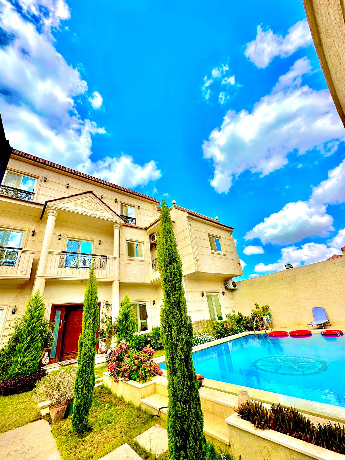 Luxurious 3-story villa, stunning sea views, accommodating up to 16 guests. Features include an indoor pool, garden, three sea-facing patios, and BBQ area. The villa has 6 bedrooms, 4 with A/C, and offers Wi-Fi, TVs, and workspaces. Enjoy a fully equipped rooftop kitchen and poolside kitchenette. Located on a secure, high hill in front of Sidi Kerir village, with a large parking area. Close to Carrefour and shopping areas, this villa offers a comfortable & perfect getaway =Families only unit