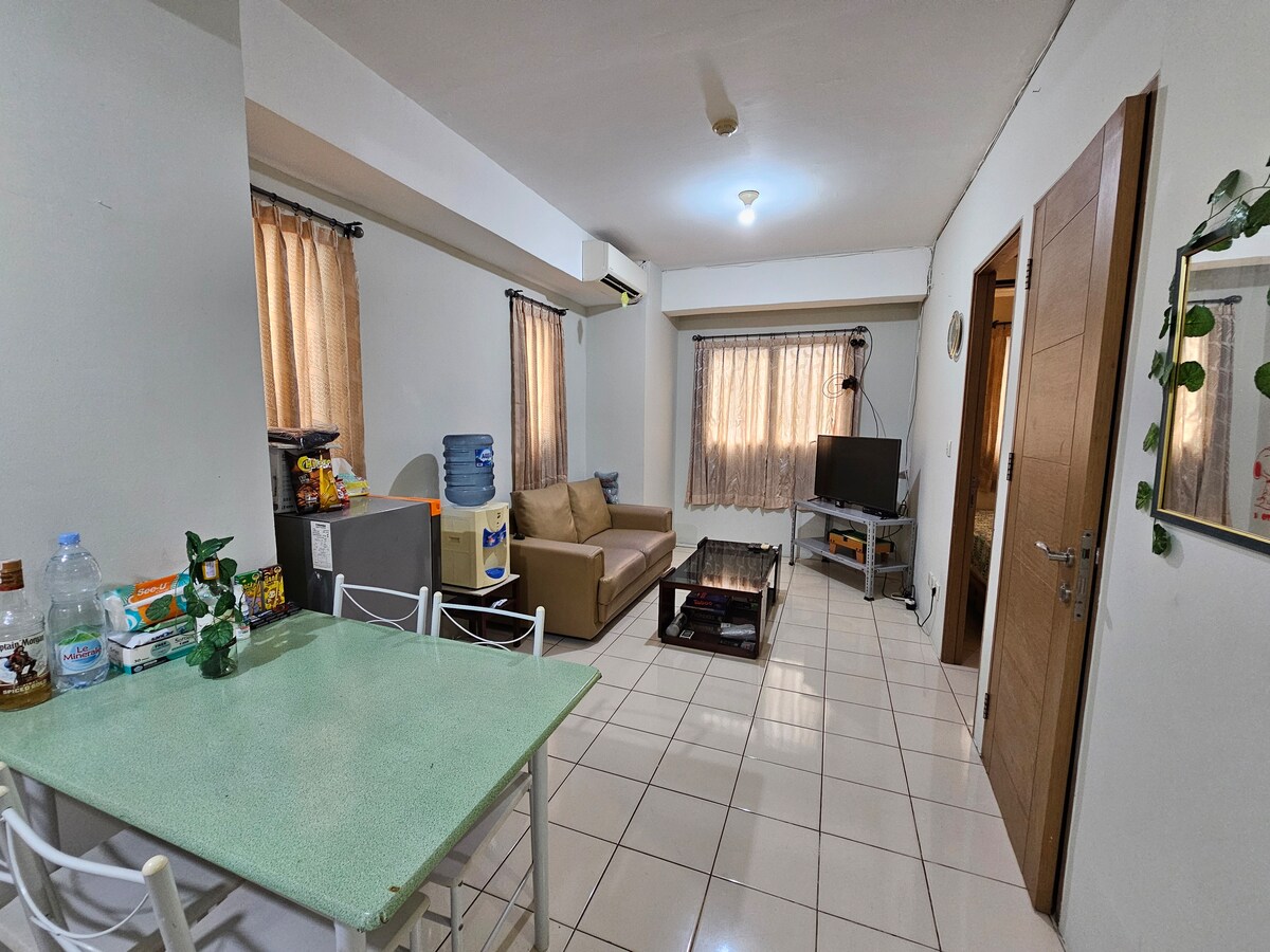 The room is full furnished & have complete amenities: LED TV 43", AC in the living room & main bedroom, couch & tea table, dining table, stove, refrigerator, dispenser, plates & glasses, cooking set, coffee & tea. The place is quite close to Kelapa Gading. There are many foods available on the ground floor. Convenience store (Indomaret, CircleK, Familiy Mart) & laundry are also available at the ground floor. There is a swimming pool at the ground floor which can be accessed using the key card.