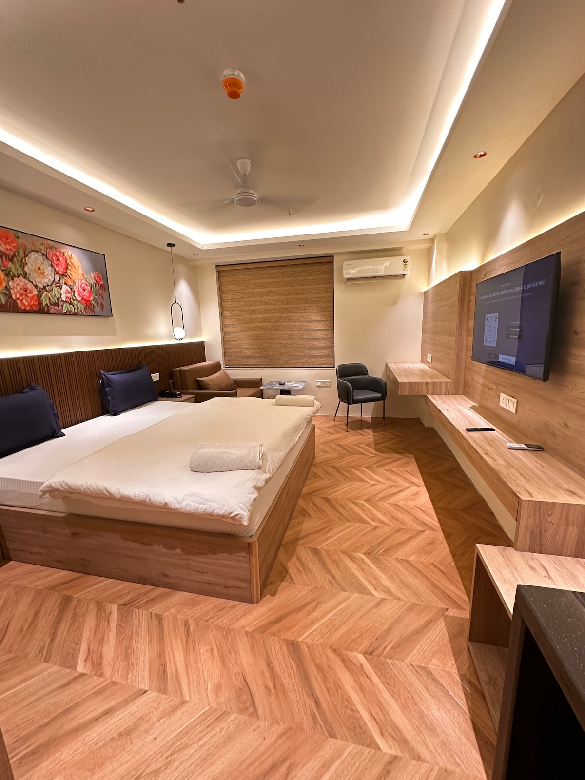 내 집 같은 따뜻함과 고급 호텔의 분위기를 느낄 수 있는 차분하고 고급스러운 스튜디오에서 휴식을 취해보세요. 푹신한 킹사이즈 침대와 현대적인 인테리어가 돋보이는 가구가 구비되어 있습니다. 편의시설 연중무휴 식료품점 현대적인 간이 주방 초고속 와이파이 및 TV 타워 외부에 주차 공간이 있지만 연중무휴로 보안이 유지됩니다. 첫 2층에는 상업용 상점이 있으며 다음을 제공합니다. 세탁 서비스 미용실 카페 의료용품점 인도 엑스포 마트, 불드 인터내셔널 서킷까지 쉽게 이동할 수 있습니다. 커플, 나홀로 여행족 또는 비즈니스 파트너에게 적합합니다.