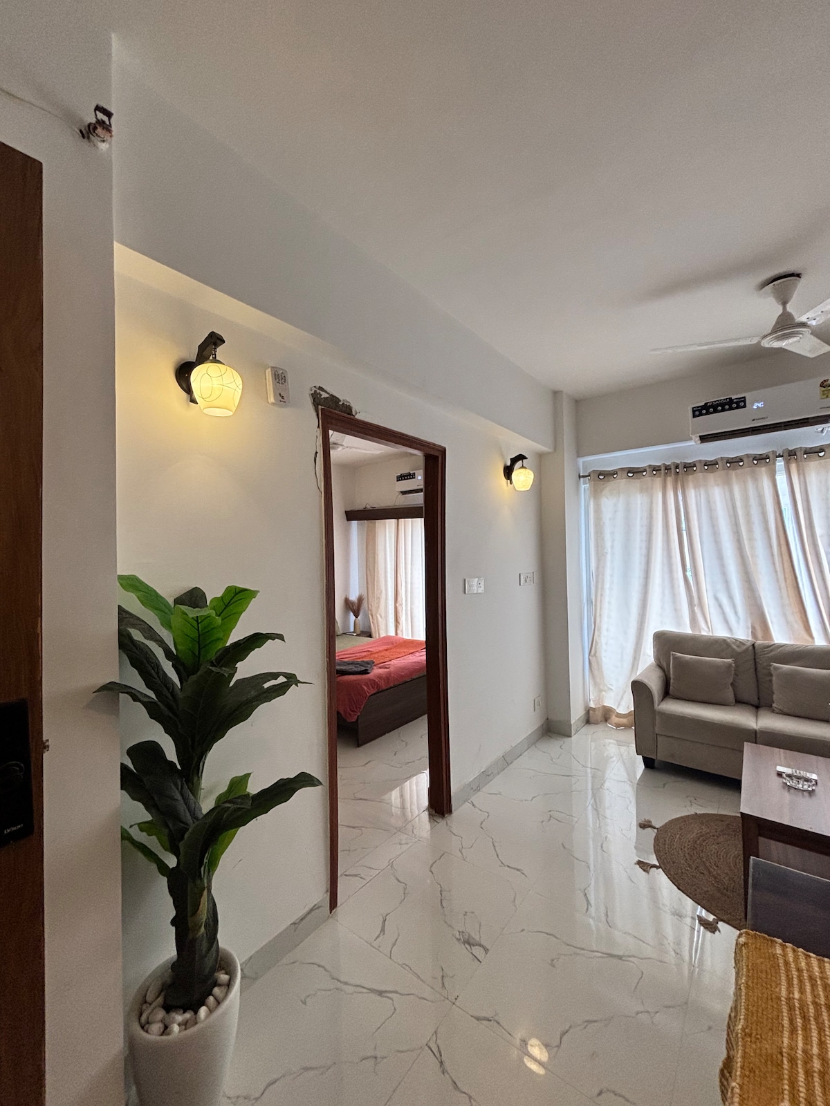 Fully furnished luxurious studio apartment with all modern amenities available in Greater Noida near Metro station. Luxurious , Specious and Couple friendly studio in Greater Noida Near Expo Mart. What You’ll Love: ✔ Unique Interior – Enjoy the Mesmerizing Interior. ✔ Modern Comfort – A beautifully furnished space with a comfy bed, cozy seating, and stylish decor. ✔ Fully Equipped Kitchen – Cook your favorite meals with ease. ✔ Fast WiFi & Smart TV – Stay connected and entertained.