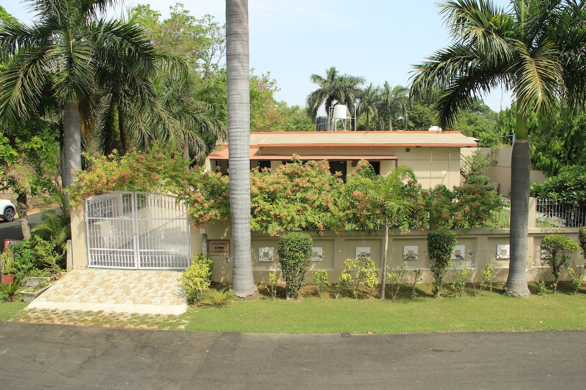 Do you want to bond with family, friends or colleagues in the lap of nature in New Delhi? Do you wish to experience the ideal blend of old-world charm and hospitality with all modern amenities? Do you desire to take a stroll in sprawling lawns under fruit trees or lie in wait for peacocks? If YES then this independent 3-bedroom apartment of Shiv Niwas villa, with private balconies & roof terrace, smart locks, property-wide high-speed Wi-Fi, free car parking & caring lady caretaker-cooks BECKONS!