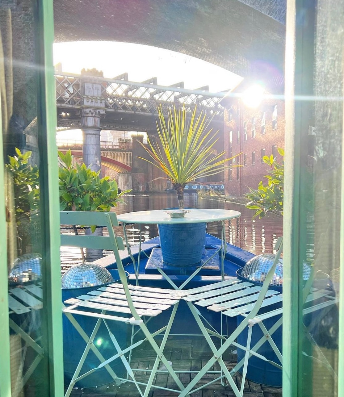 WELCOME TO FLOATING HOMESTAYS An adorable pet-friendly, romantic hideaway in heart of Manchester. Central heating and wood burner. Quirky interior inspired by 1950’s Havana. Showpiece is an honesty bar with wine, spirits & cigars. Kitchen equipped for cooking with some light breakfast provided (coffee/tea/cereal/milk/OJ). Shower/sink/toilet. Double bed & single couch. Bedroom overlooks an attractive plant filled deck to enjoy the city whilst remaining sequestered from the outside world.
