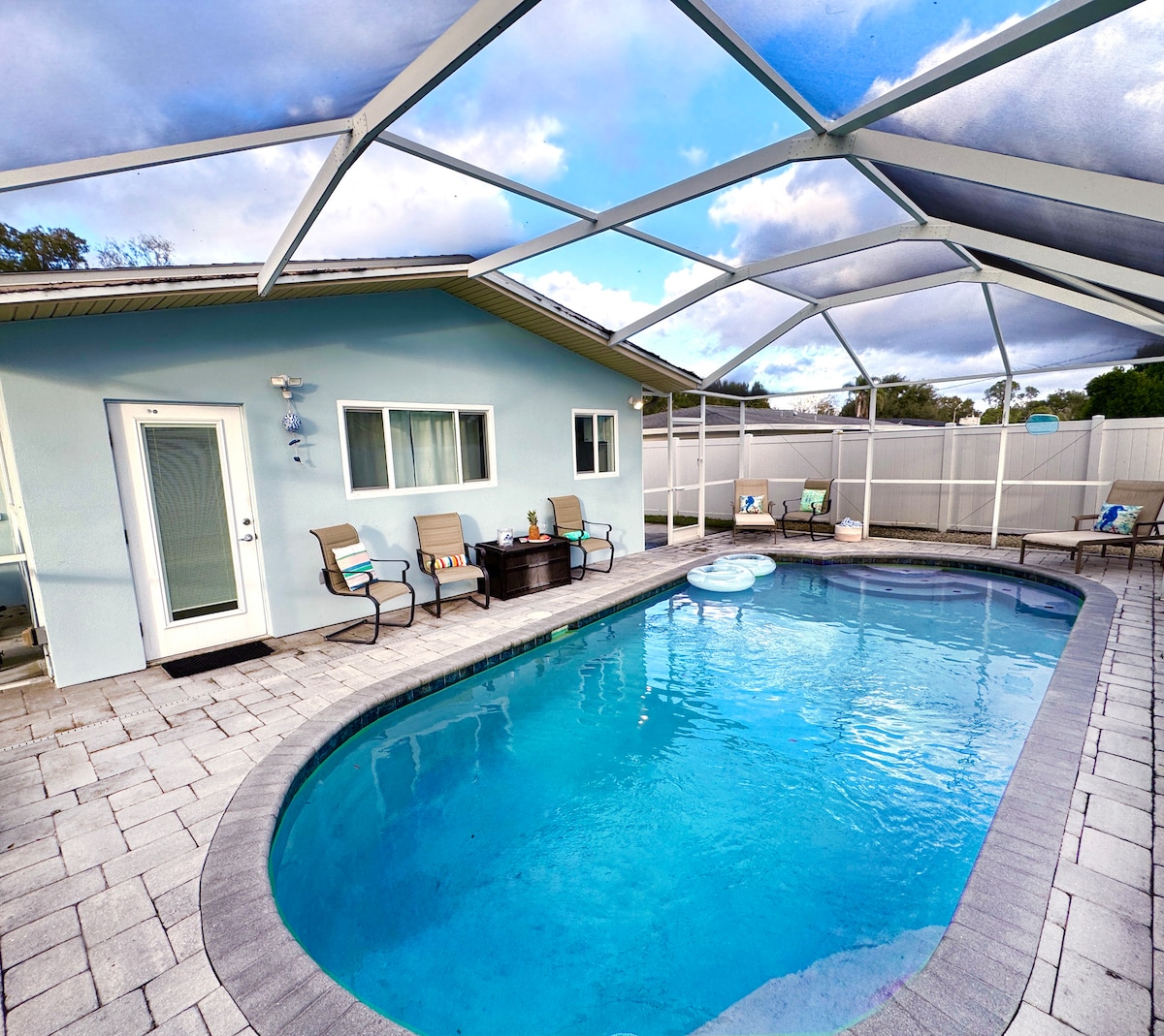 벨에어 비치 오아시스에 오신 것을 환영합니다! 럭셔리하게 업데이트된 2BR/1BA 풀 홈은 해변과 골프 코스에서 몇 분 거리에 있습니다! 벨에어 식료품점, 커피숍, 레스토랑 등까지 도보로 이동할 수 있습니다. 지상 수영장, 라운지 의자가 있는 현대적인 퍼걸러, 지붕이 있는 식사 공간, 편안한 해먹을 갖춘 전용 울타리가 완비된 리조트 스타일의 야외 거실 공간을 즐겨보세요! 세인트 피트 클리어워터와 탬파 공항, 현지 병원 등으로 쉽게 이동할 수 있는 이 독특한 벨에어 블러프스 동네가 마음에 드실 거예요.
