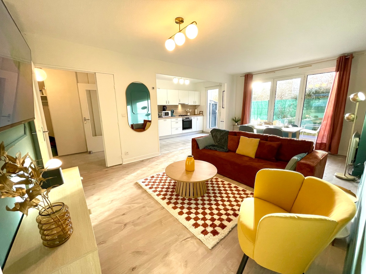 ▪️ Appartement 60m2 ENTIEREMENT RENOVE, 4 personnes, avec son jardin et terrasse, au calme et à deux pas du centre-ville et commerces. ▪️ CONFORT optimal avec son LIT QUEEN SIZE et tout ces équipements. ▪️ Le logement est situé dans une copropriété calme. ▪️ Terrasse extérieure aménagée. ▪️ Parking gratuit devant la résidence ▪️ Wifi Fibre. Logement chauffé entre 20 et 21 degrés. FÊTES / ÉVÉNEMENTS STRICTEMENT INTERDITS