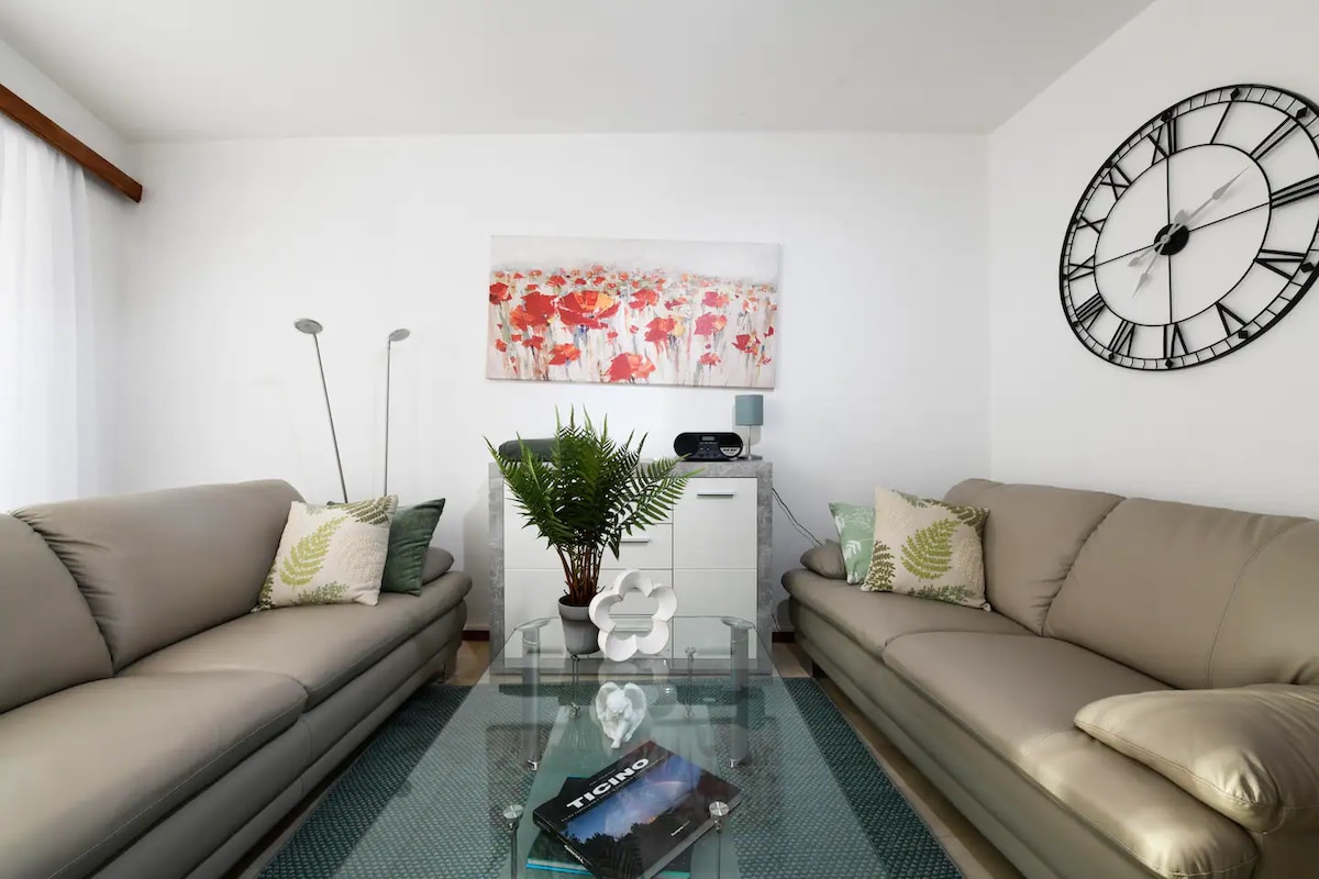 4.5-room apartment in a residential area in the heart of Ticino. Ideal for discovering all the beauties of the region. Two double beds, three single beds, accommodating a total of 7 people. Grocery store, post office, and pharmacy are within a 10-minute walk. Bus stop 200 meters away. Upon arrival, you can retrieve the key directly from the key box at the entrance by entering the code that will be sent to you in the booking confirmation email.