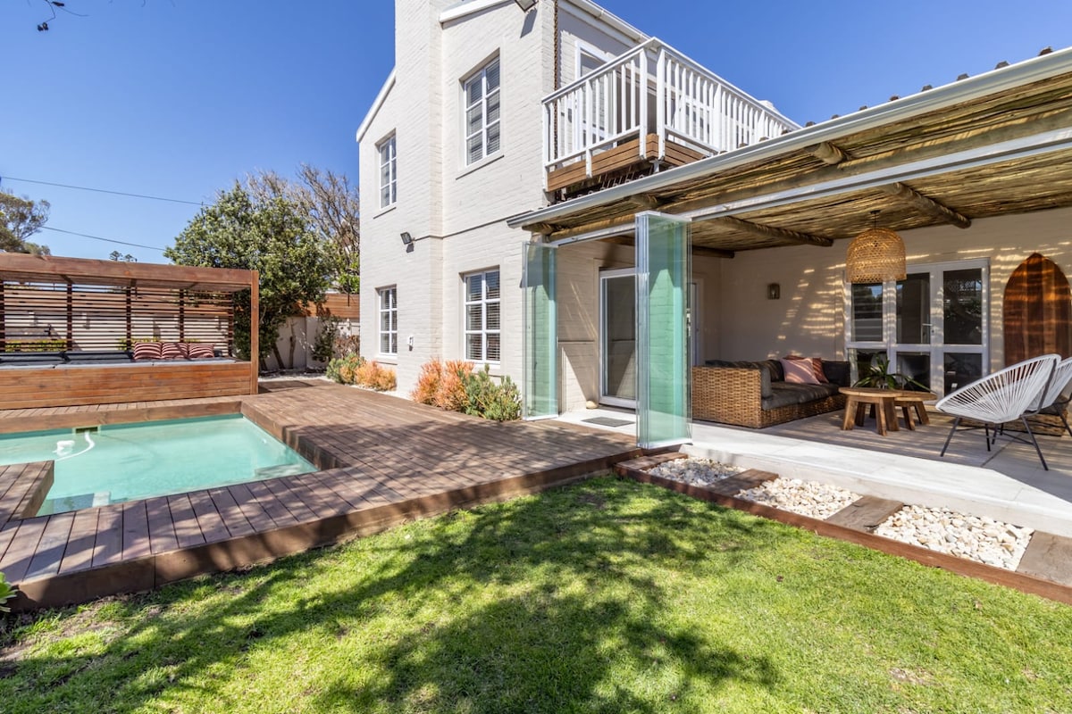 완전히 리모델링된 해변 카바나에 오신 것을 환영합니다. 바다 바로 앞에 위치하여 숨막히는 전망과 일몰을 감상할 수 있으며, 아름다운 울창한 정원, 수영장, 놀이터, 초고속 와이파이, 바닥 난방, 보조 전원, 전용 주차장을 갖추고 있습니다. 가족, (카이트)서퍼, 평화를 찾는 사람들에게 완벽합니다. 케이프타운의 활기찬 도심에서 불과 15분 거리에 있으며, 훌륭한 바, 레스토랑, 상점, 슈퍼마켓에서 단 몇 분 거리에 있습니다.