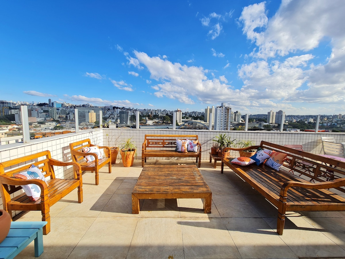 Hospede-se com conforto no centro de BH! Aproveite 3 quartos privativos (camas de casal) e 1 banheiro de suΓte. O apartamento Γ© compartilhado com a anfitriΓ£. VocΓͺ terΓ‘ privacidade em seus quartos e poderΓ‘ utilizar a sala, cozinha equipada e lavanderia. LocalizaΓ§Γ£o excelente: acesso fΓ‘cil ao Mercado Central, Ed. Maletta, Parque Municipal e PraΓ§a Sete. PrΓ³ximo Γ RodoviΓ‘ria e Feira Hippie. Wi-Fi veloz!
