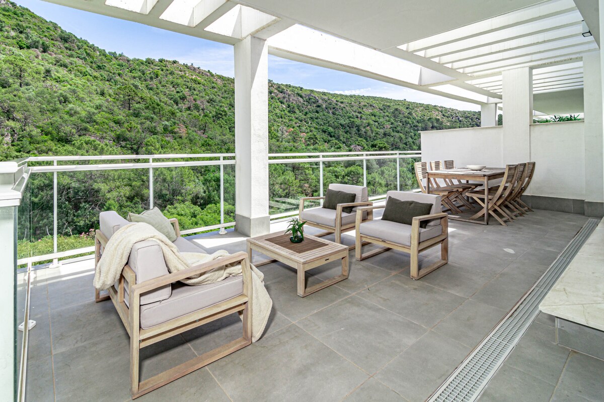 펜트하우스/타운하우스, 2층(240m²), 지중해와 산 위의 두 테라스에서 환상적인 전망을 즐길 수 있으며 공간이 넓습니다! 저희 아파트는 휴식과 아름다운 전망을 찾는 여러분에게 적합합니다. - 욕실이 딸린 침실 3개 - 테라스 2개. 지중해, 라퀸타 골프 코스, 라콘차산, 지브롤터, 때로는 아프리카까지 내려다보는 멋진 파노라마 전망을 감상할 수 있습니다. - 인피니티 풀 22미터 - 해변, 마르베야 또는 산페드로까지 차로 10분.