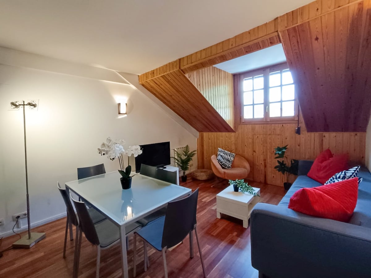 오센 피레네 산맥의 아름다운 마을인 빌라 데 베나스케 중심부에 위치한 이 다락방 숙소를 즐겨보세요. 모든 서비스를 이용하실 수 있습니다. 숙소는 엘리베이터가 있는 3 층에 위치해 있습니다. 더블 룸 1개와 편안한 소파 베드가 있는 거실, 욕실과 필요한 모든 것이 갖춰진 주방을 갖추고 있습니다. 스키와 자전거를 보관할 수 있는 넓은 창고도 있으며, 계단 없이 출입할 수 있습니다.