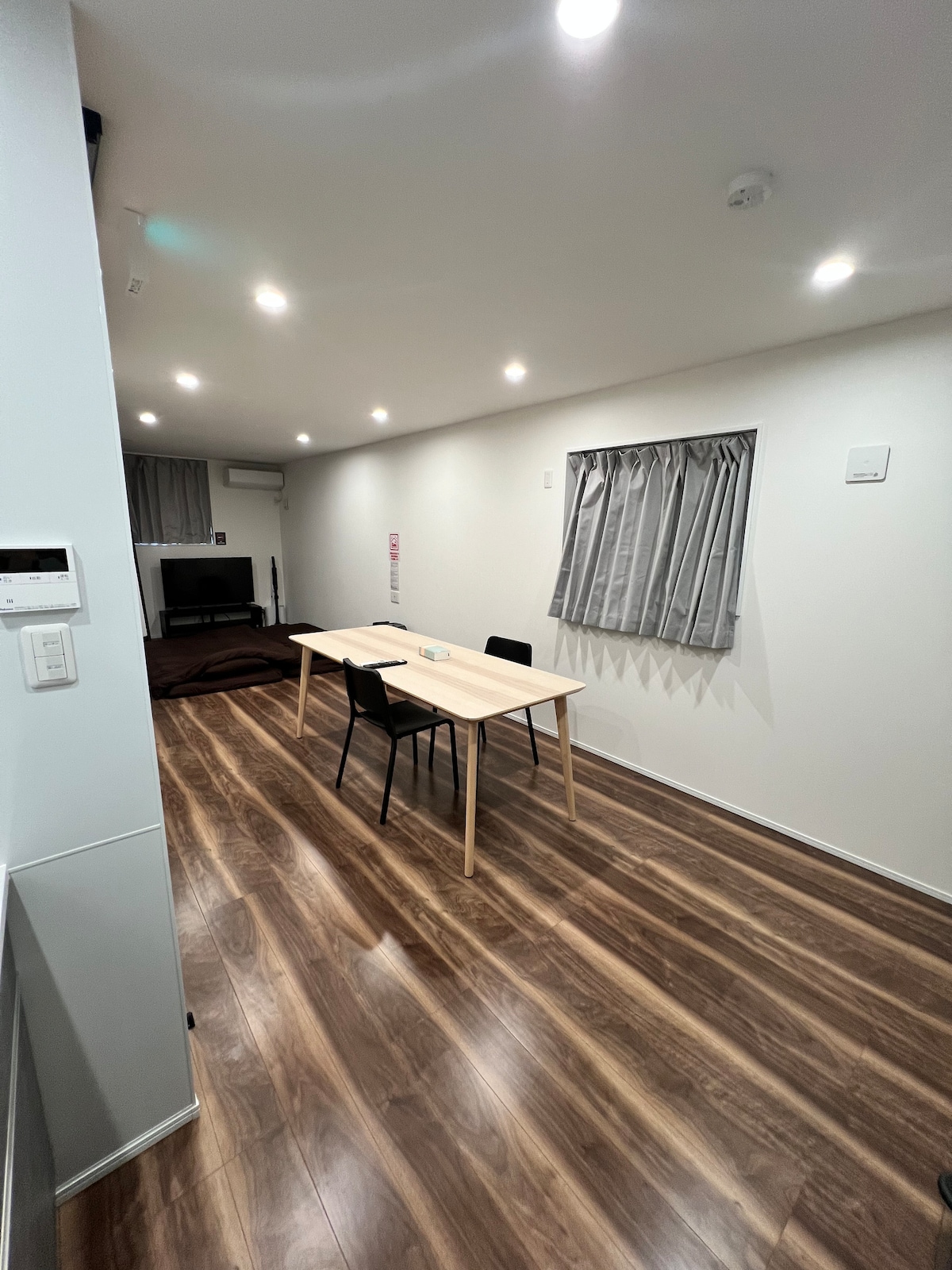 Entire private apartment (1F), approx 32 sqm. Up to 4 guests, most comfortable for 2. 2 bedrooms, 1 double bed, 2 futons available (extra fee). Designer-renovated Japanese home. 5 min walk to JR Bentencho Sta 8 min walk to Osaka Metro Chuo Line 3 st to USJ (7 min) 4 st to JR Osaka Sta (9 min) 7-Eleven 2 min walk Onsen, supermarket, restaurants within 6 min Easy access to USJ, Umeda, Kyoto, Nara, Kobe. Quiet area, close to major sights but away from crowds.